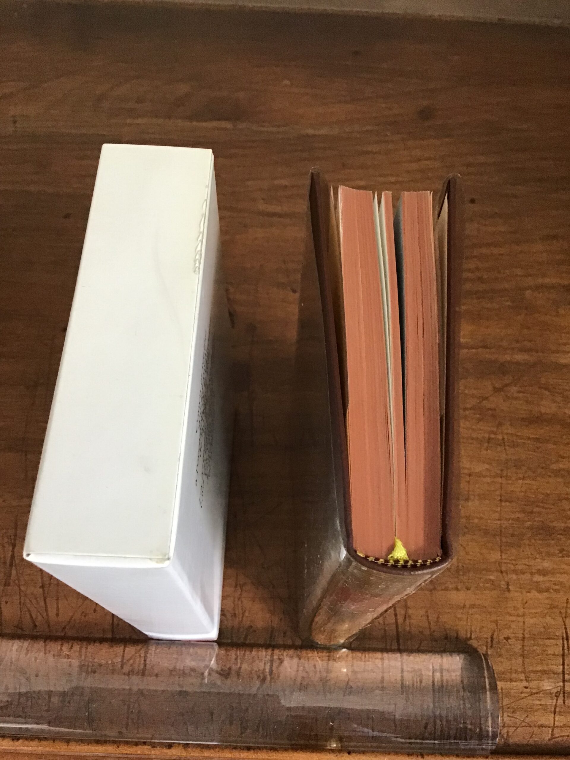 Ouvrage relié, en pleine peau dorée à l’or fin 23 carats, 2 signets, présenté dans un bel étui cartonné, Rhodoïd.