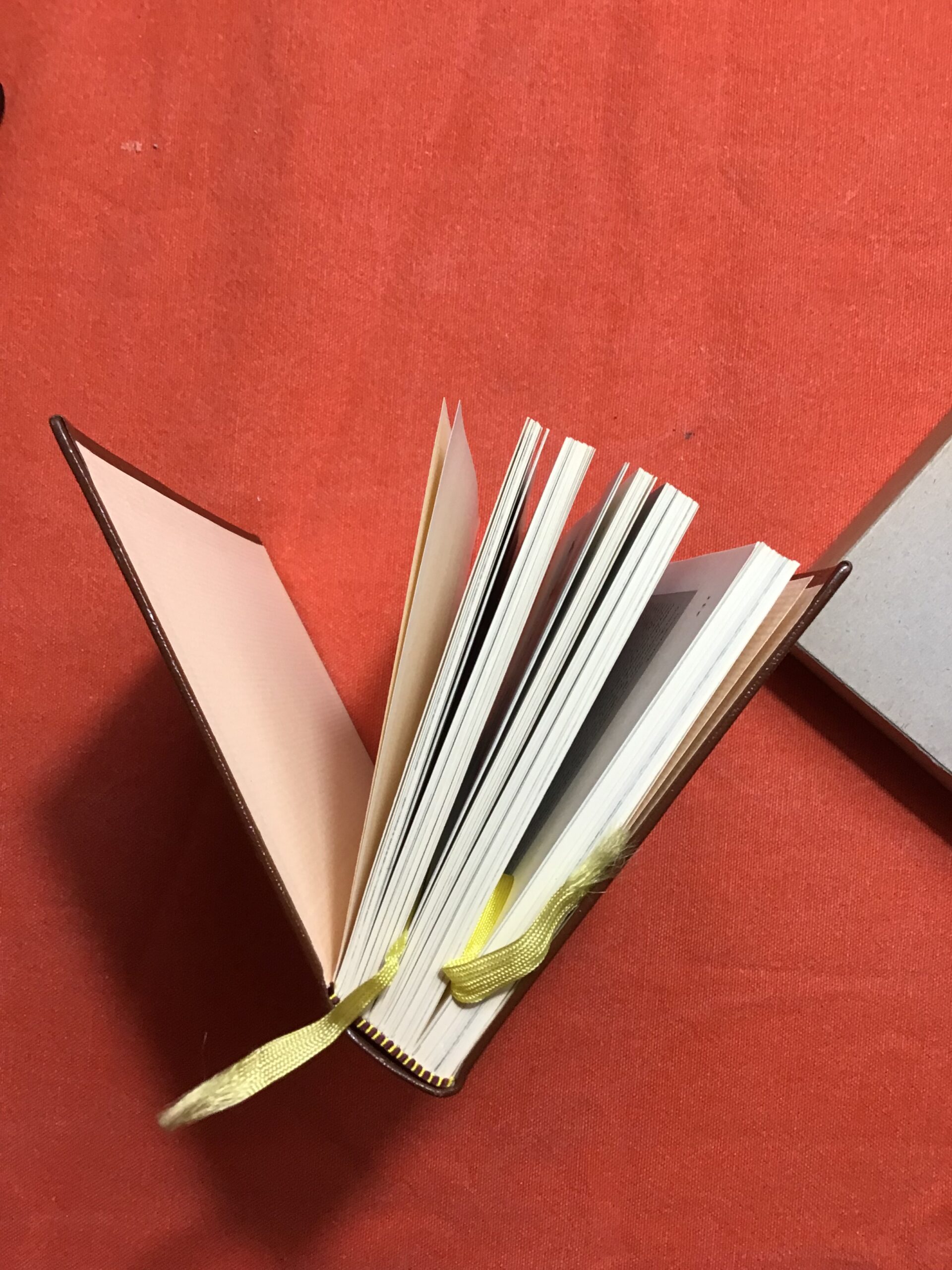 Ouvrage relié, couverture semi-rigide, sous étui cartonné, 2 signets,