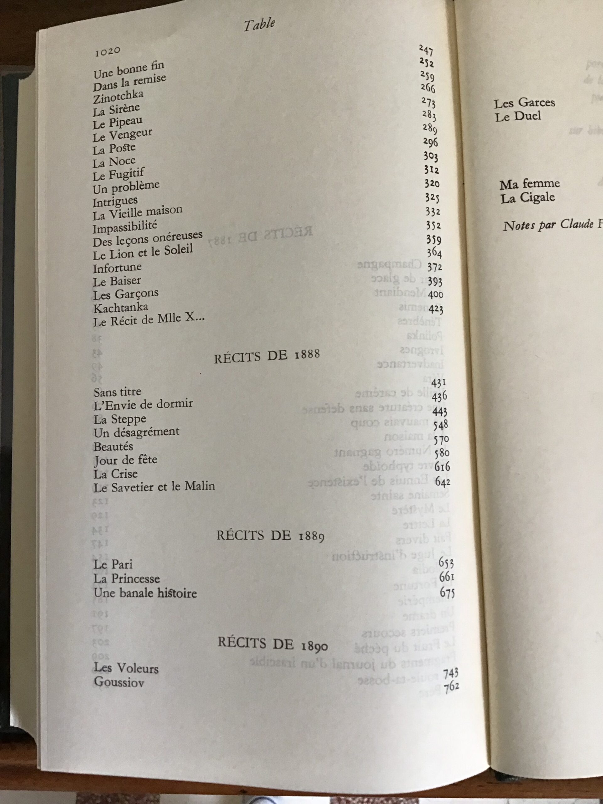 Anton TCHÉKHOV/ Oeuvres II/ Récits 1887-1892/ Traduction: Édouard PAREYRE et Lily DENIS/ Notes: Claude FRIOUX/ Volume 220 de la « Bibliothèque de la Pléiade »/ Éditions NRF GALLIMARD/ édition de 1970, impression de 1988.