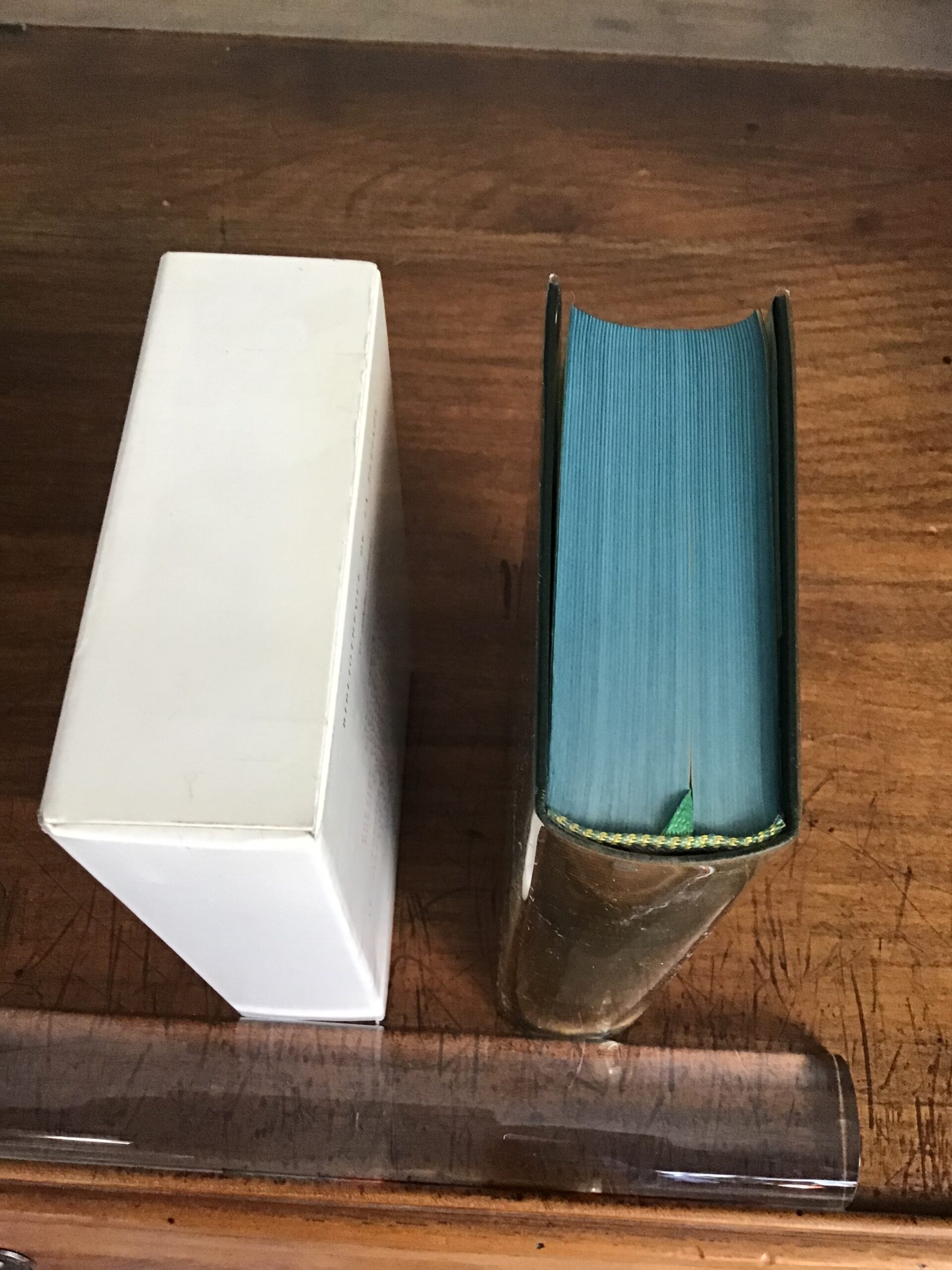 Ouvrage relié en pleine peau dorée à l’or fin 23 carats, imprimé sur papier bible, 2 signets, Rhodoïd, bel emboîtage