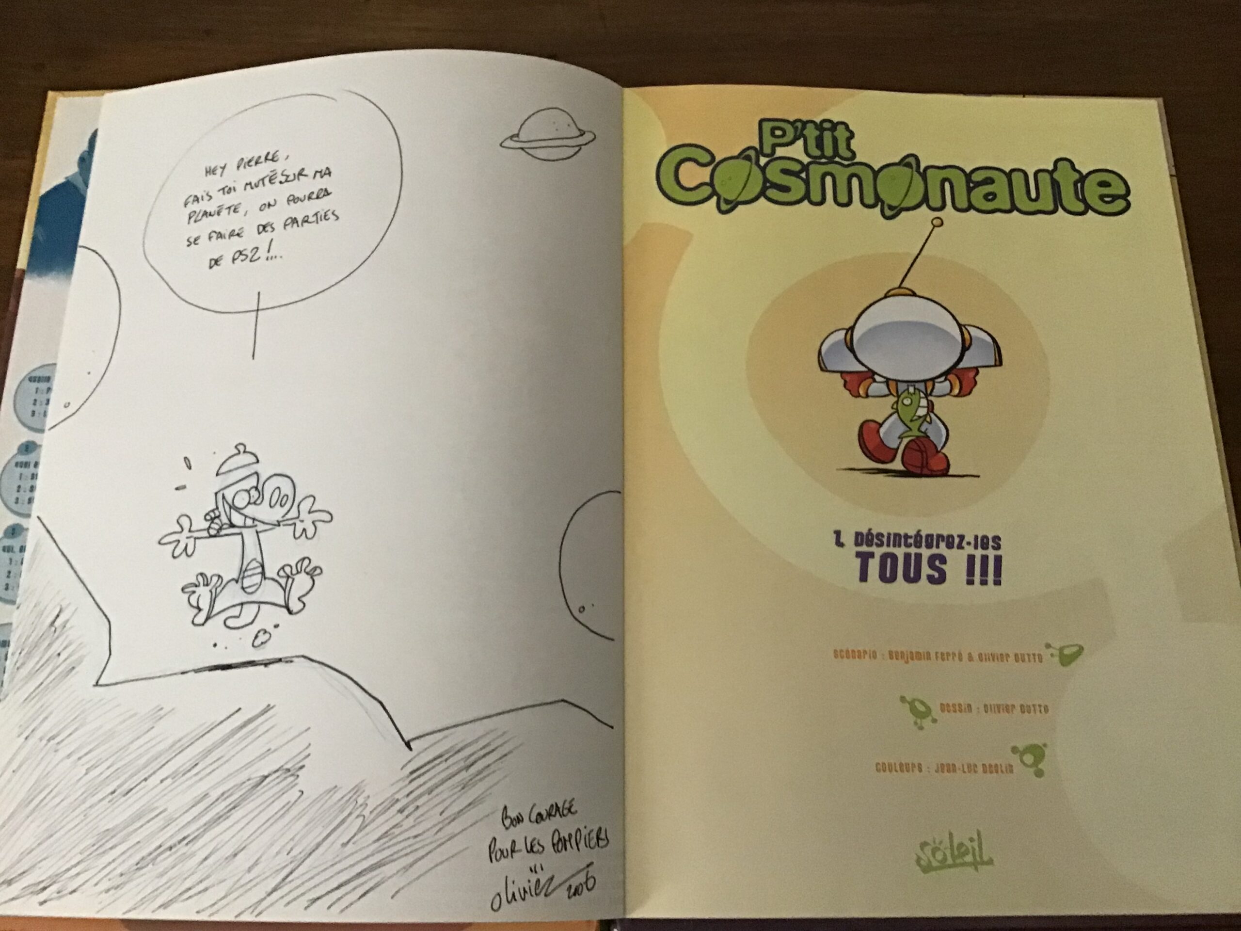 Benjamin FERRÉ (scénario)/ Olivier DUTTO (scénario et dessin)/ P’tit Cosmonaute/ tome 1: Désintégrez les Tous!!!/ Éditions SOLEIL 2006/ Album dédicacé par son dessinateur