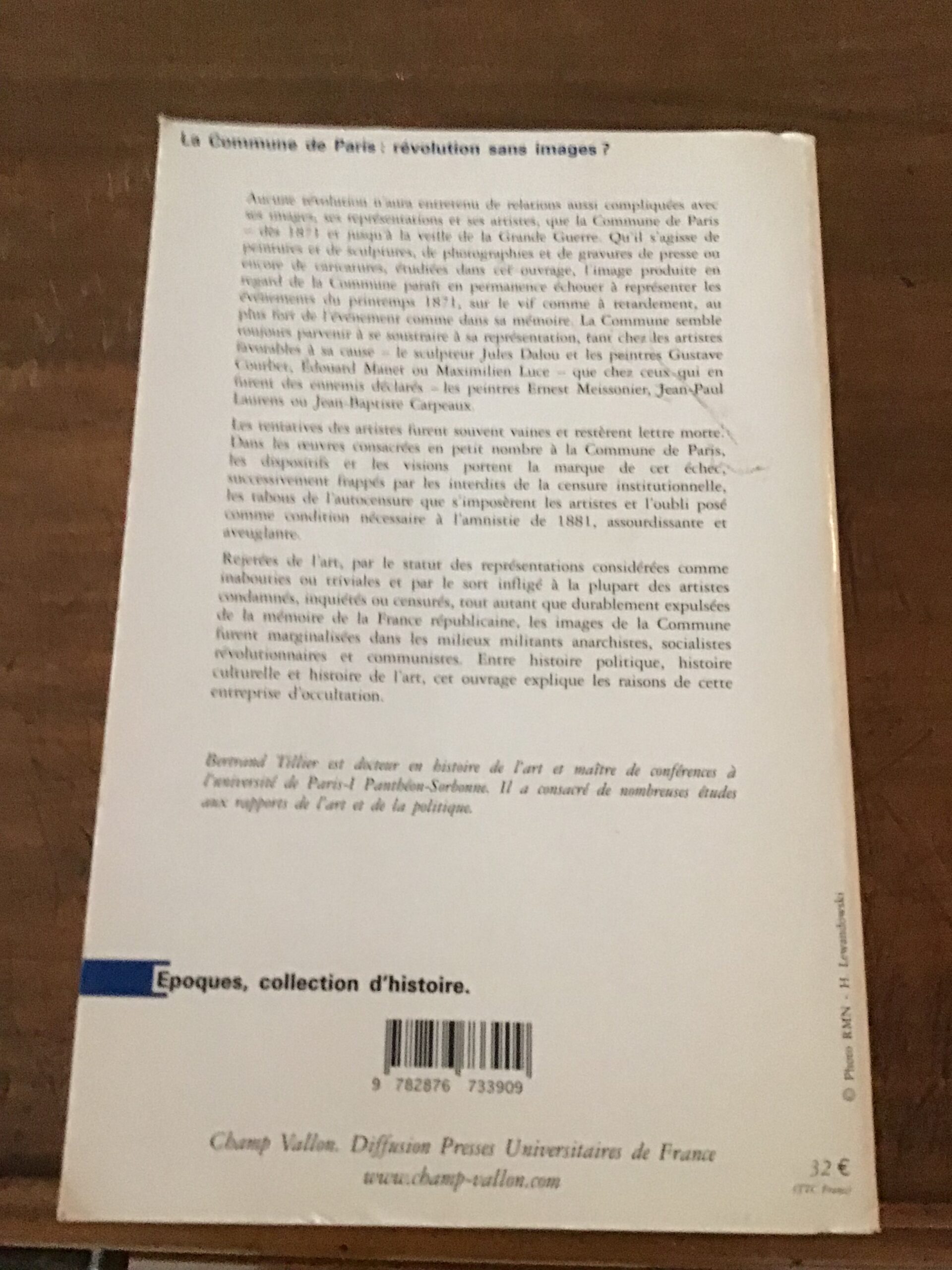 Bertrand TILLIER/ La Commune de Paris Révolution sans images?/ politique et représentations dans la France Républicaine (1871-1914)/ Collection « Époques » dirigée par Joël CORNETTE/ Éditions Champ Vallon 2004