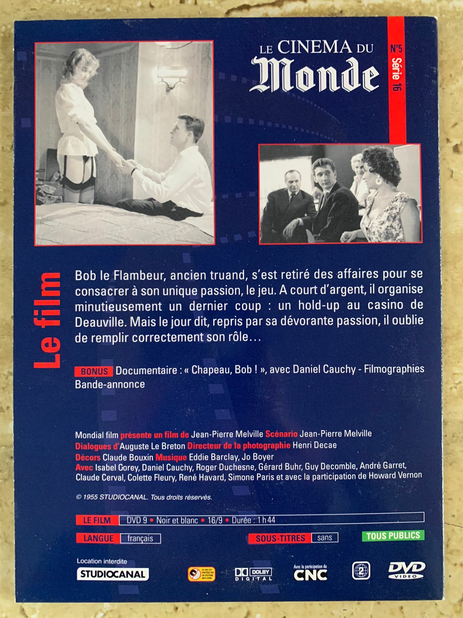 Bob le flambeur / Le cinéma du Monde numéro 5 série 16 / Jean Piere Melville / Studio canal