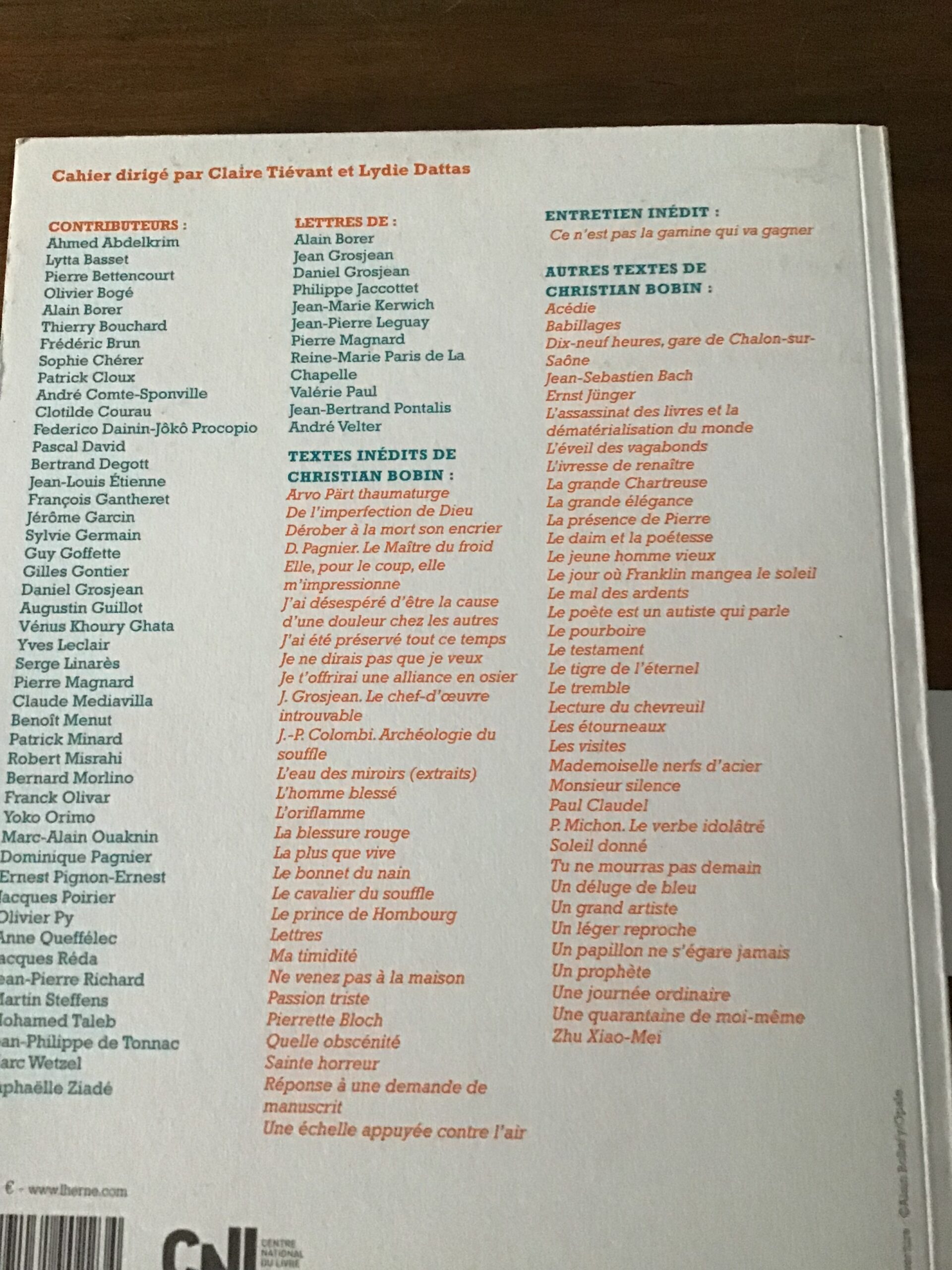 Cahier de l’Herne/ Christian BOBIN/ cahier dirigé par Claire TIÉVANT et Lydie DATTAS/ Éditions de l’Herne 2019