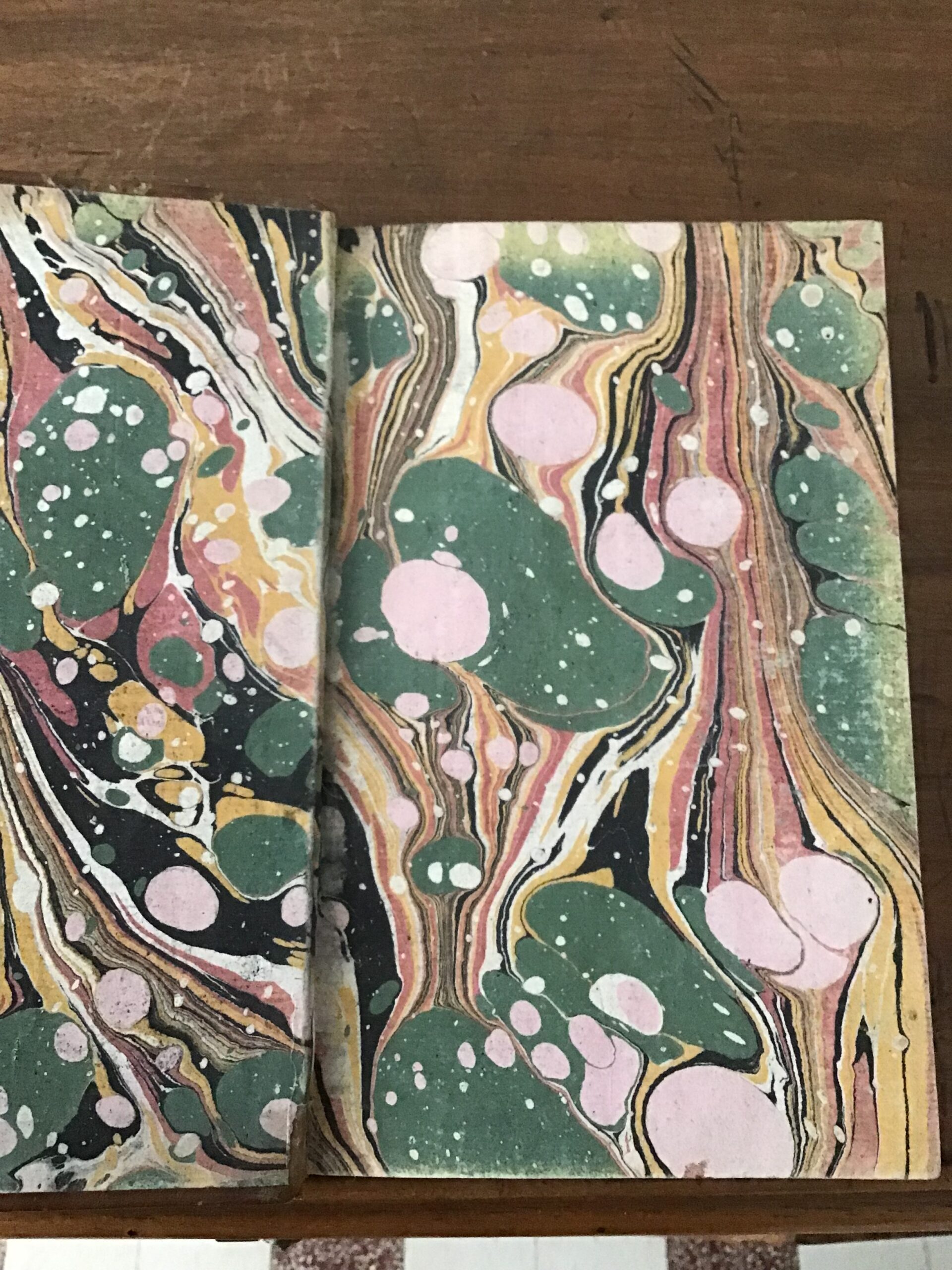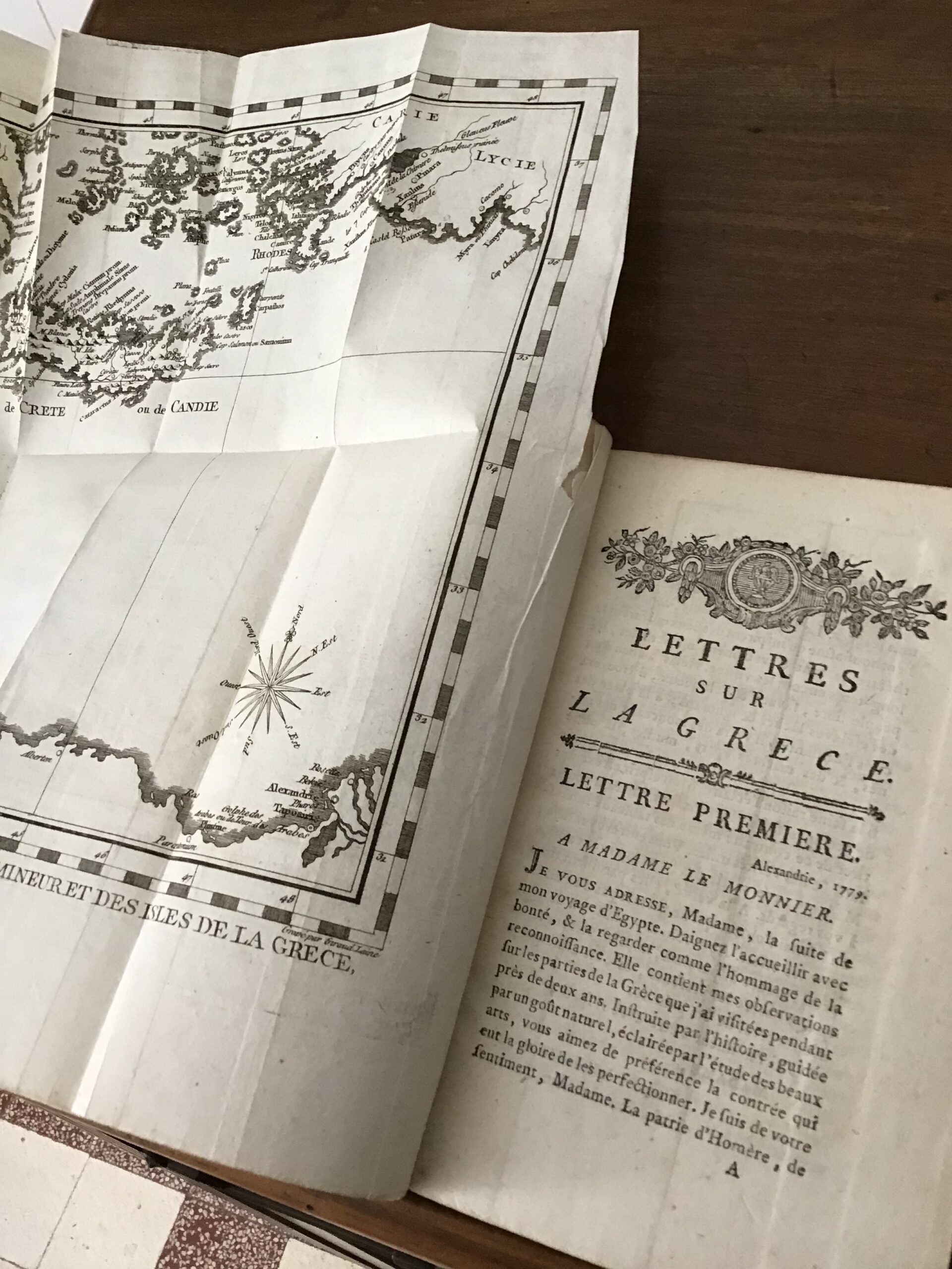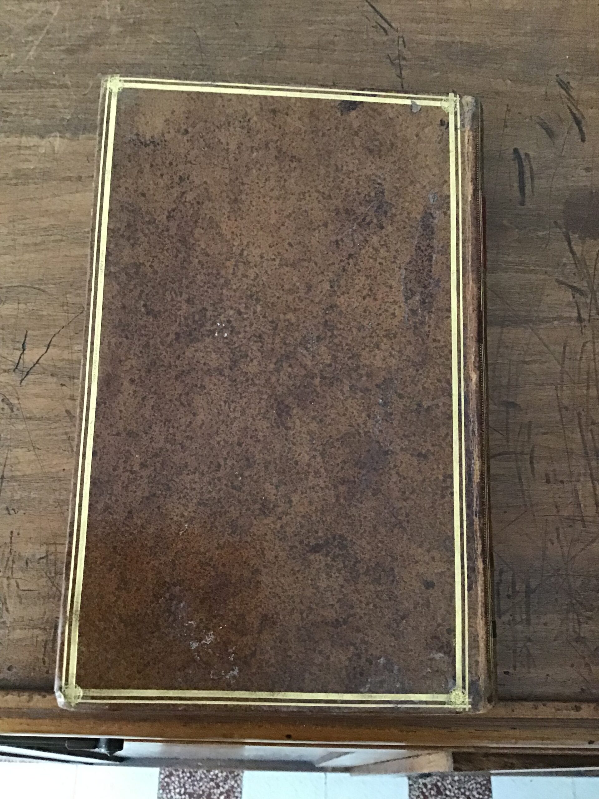 état acceptable: coins frottés, revêtement de la couverture usé, rousseurs, marques anciennes d’humidité sur les 2 premières et 3 dernières pages; un des plans dépliants présente des déchirures.