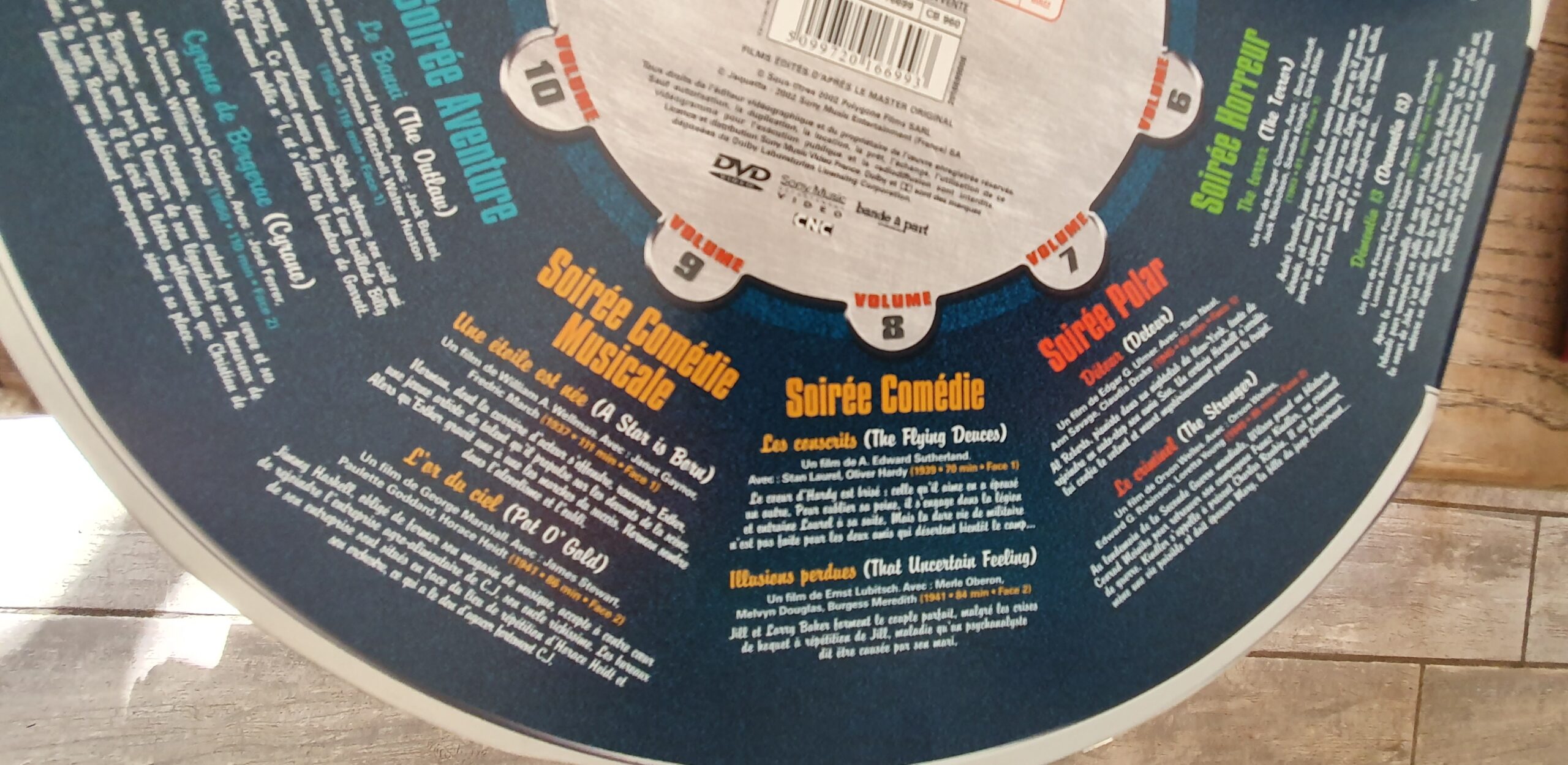 Coffret cartonné et plastique (forme bobine de film) avec 20 classiques américains en VOSTF, 10 DVD zone 2