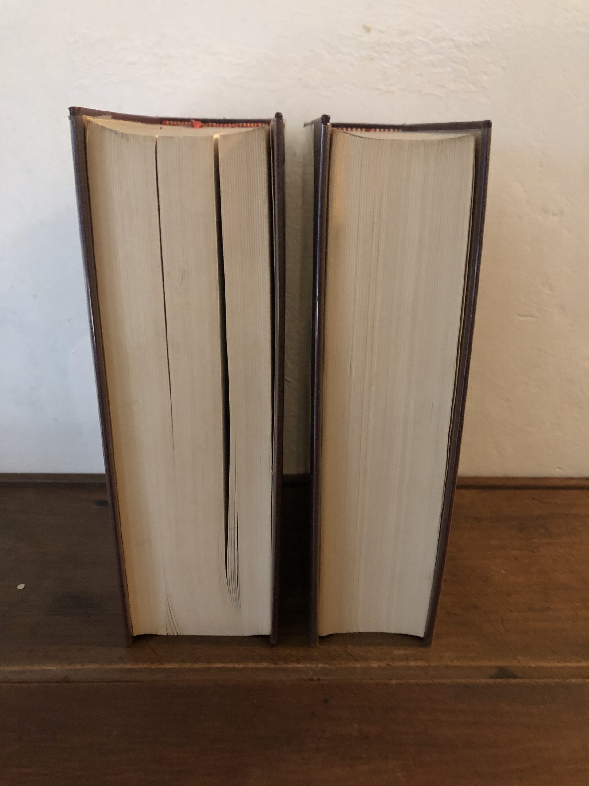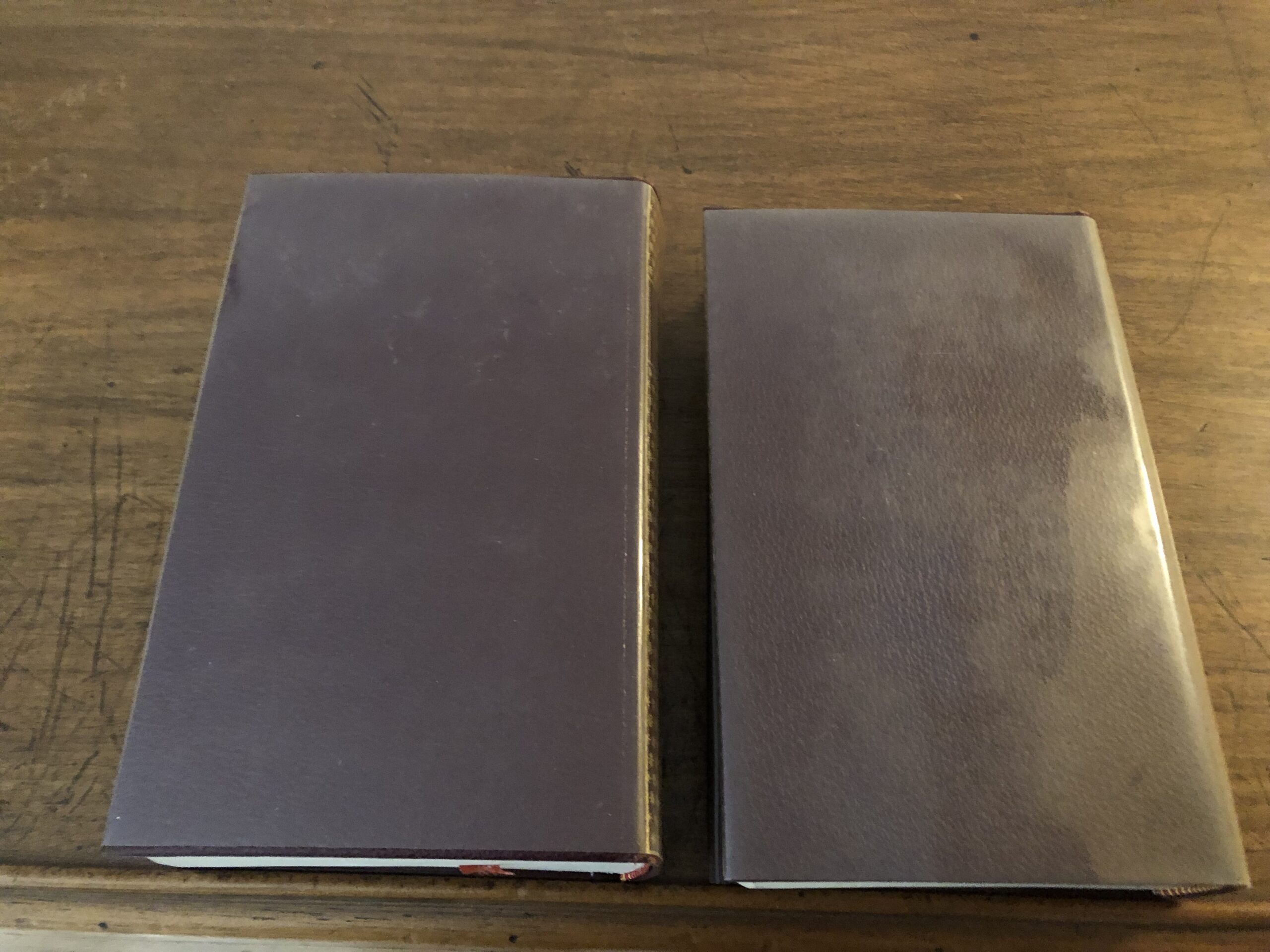 2 volumes reliés, imprimés sur papier bible, 2 signets chacun, protégés par un Rhodoïd, pas d’emboîtage