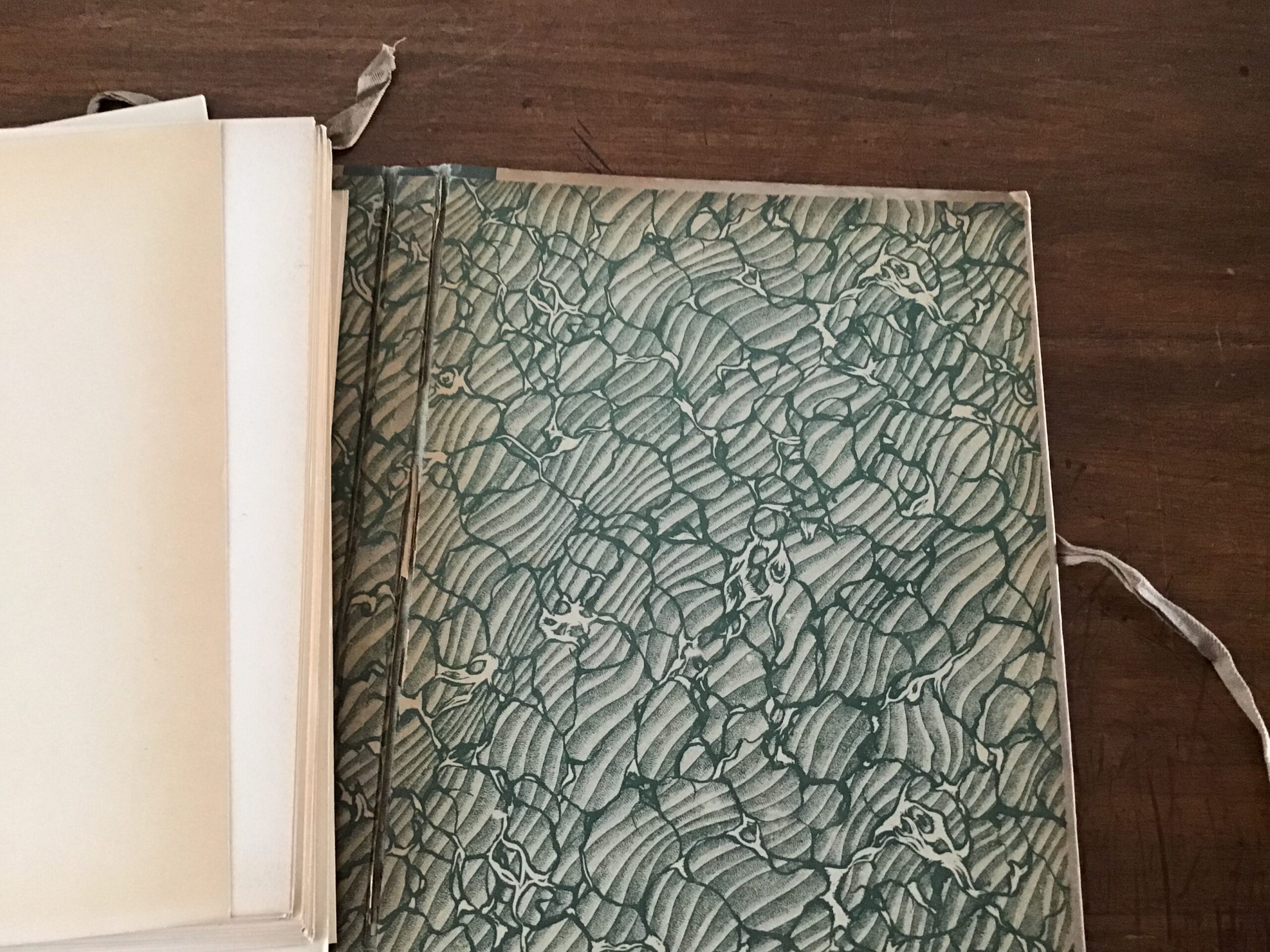état acceptable: la chemise cartonnée est défraîchie, usée, décolorée, les lacets sont usés mais le contenu est en bon état général (hommage de l’éditeur en première page).