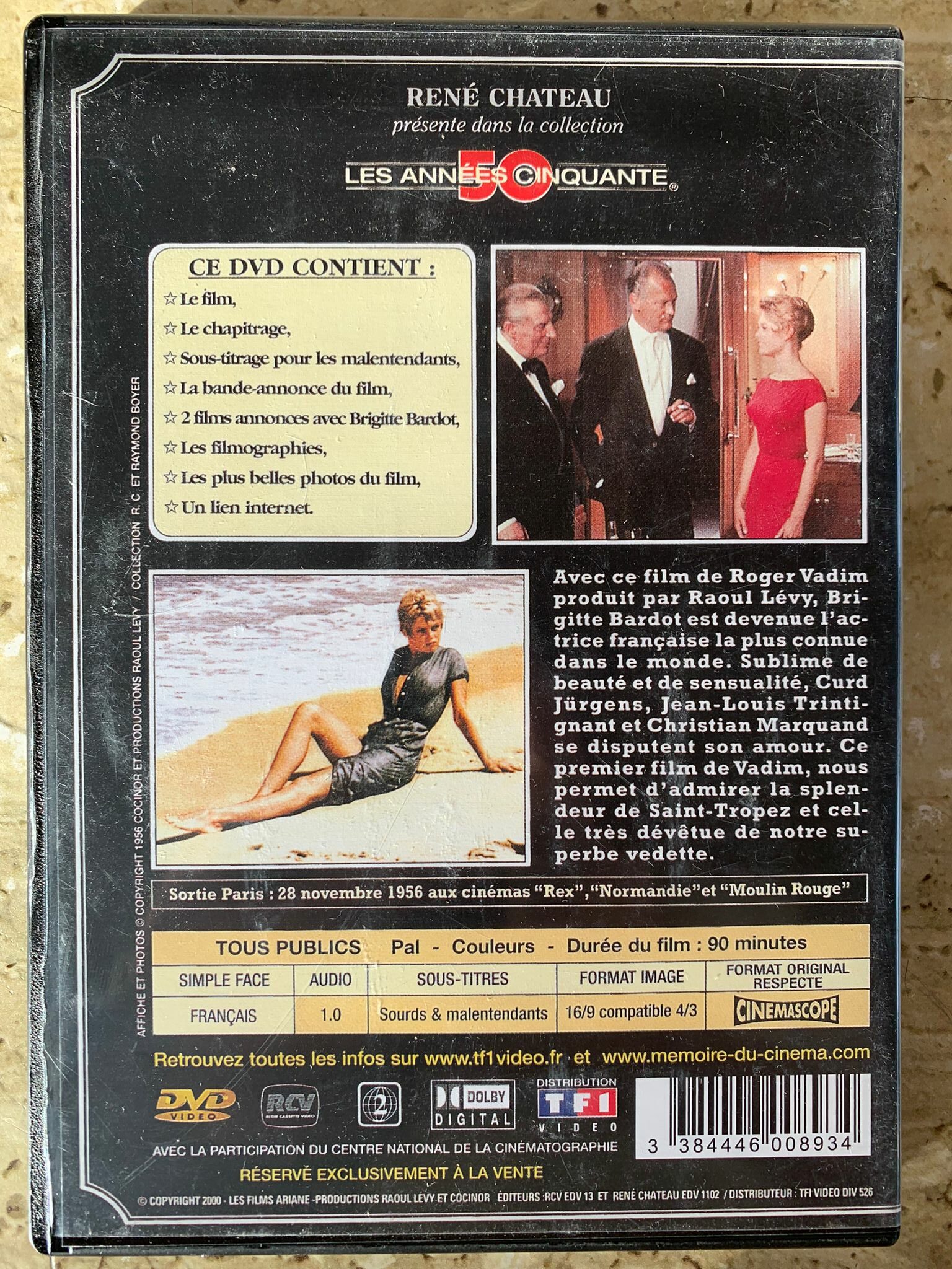 Et dieu créa la Femme / Roger Vadim / Brigitte Bardot / DVD vidéo