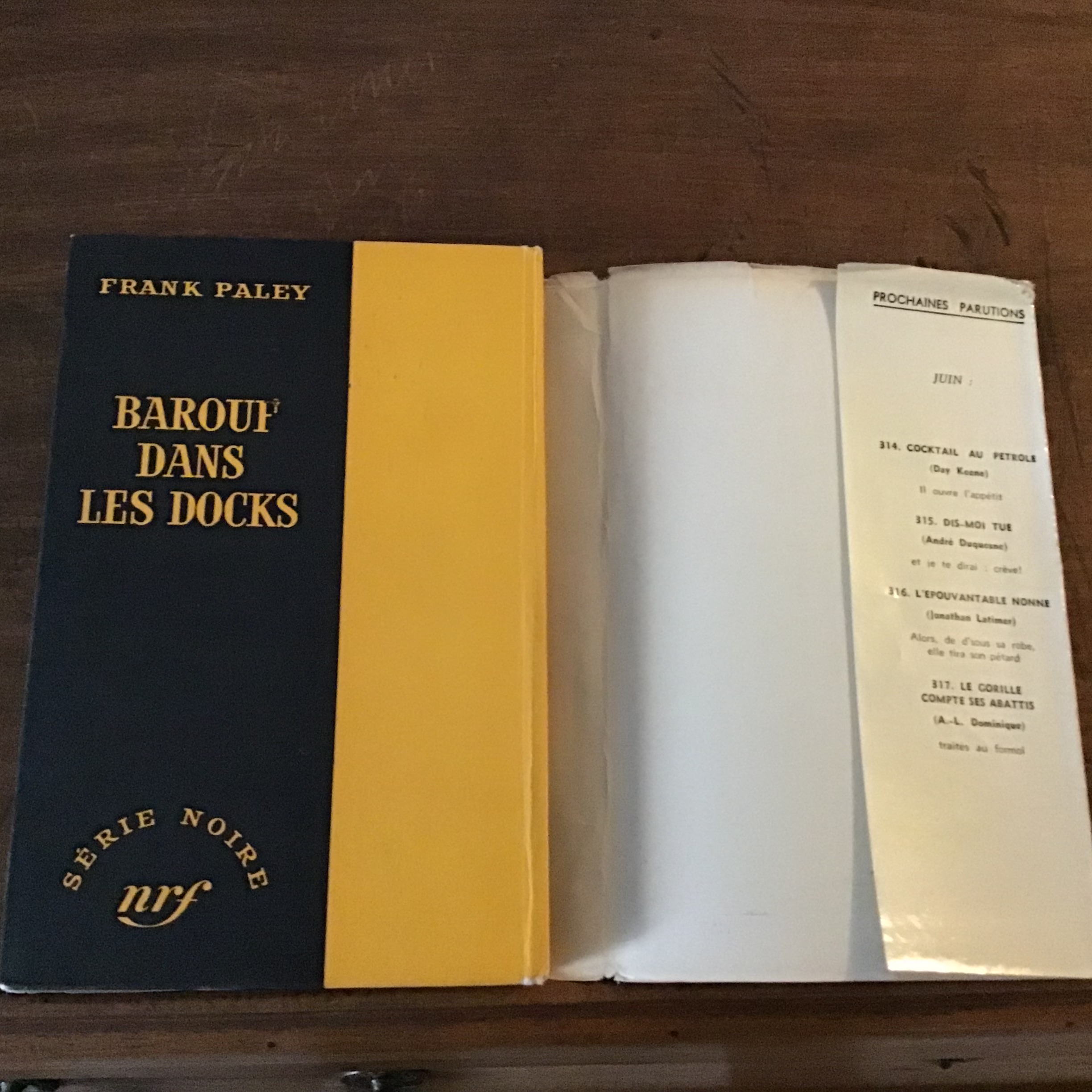 Franck PALEY/ Barouf dans les docks/ Traduit de l’Américain par C.WOURGAFT/ volume numéro 313 de la Série Noire/ sous la direction de Marcel DUHAMEL/ Éditions Gallimard 1956
