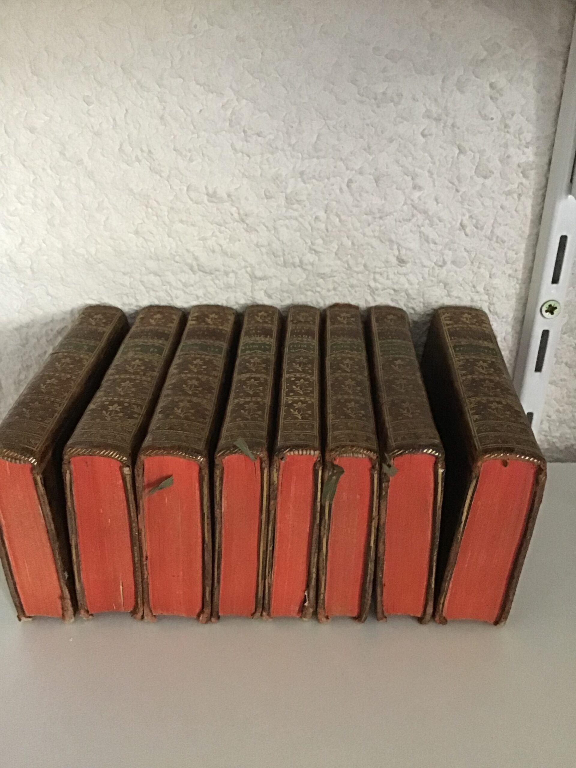 6 tomes en 8 volumes in-12 (8X14 cm), reliures de l’époque, signets, tranches teintées de rouge.
