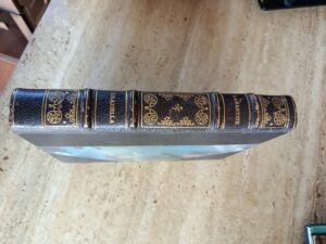 1931, l’édition d’art H. Piazza, in-8 demi-cuir à coins de pages, titrage et tête dorés, dos à 4 nerfs, plats et gardes marbrés, étui cartonné marbré, illustrations couleurs de Brunelleschi dont une en frontispice, exemplaire sur vélin à la cuve des papeteries de rives n°999/1100.