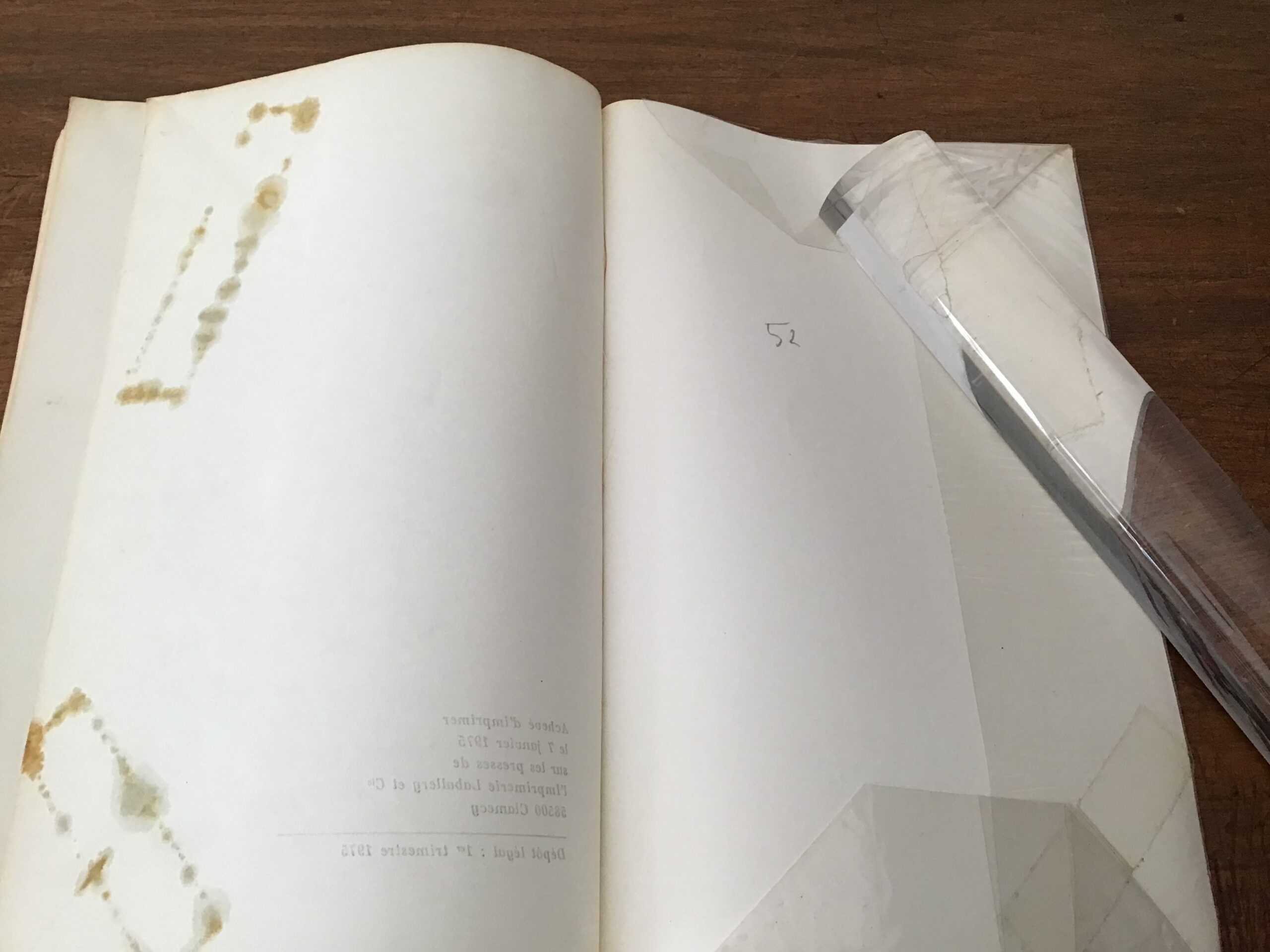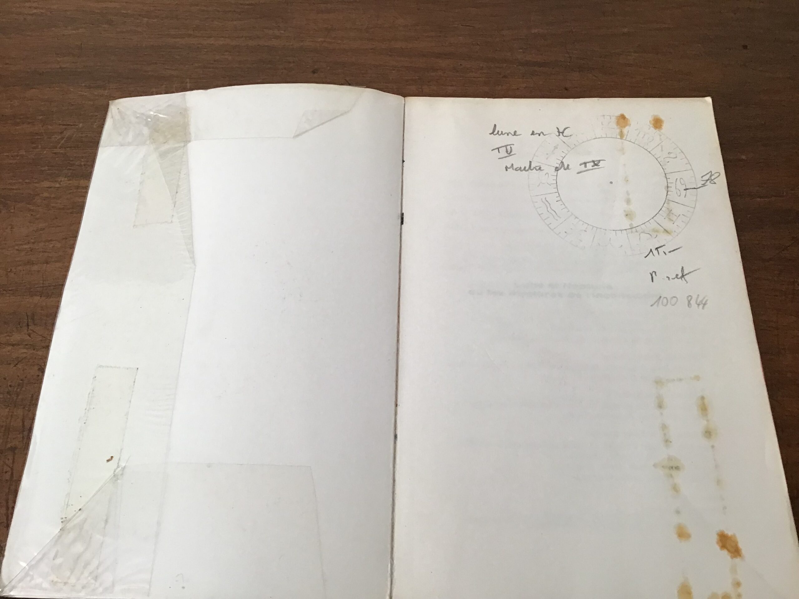 état acceptable: sur la page de garde et la dernière page traces (cf photos) de l’adhésif qui a servi à maintenir collée une couverture plastifiée.