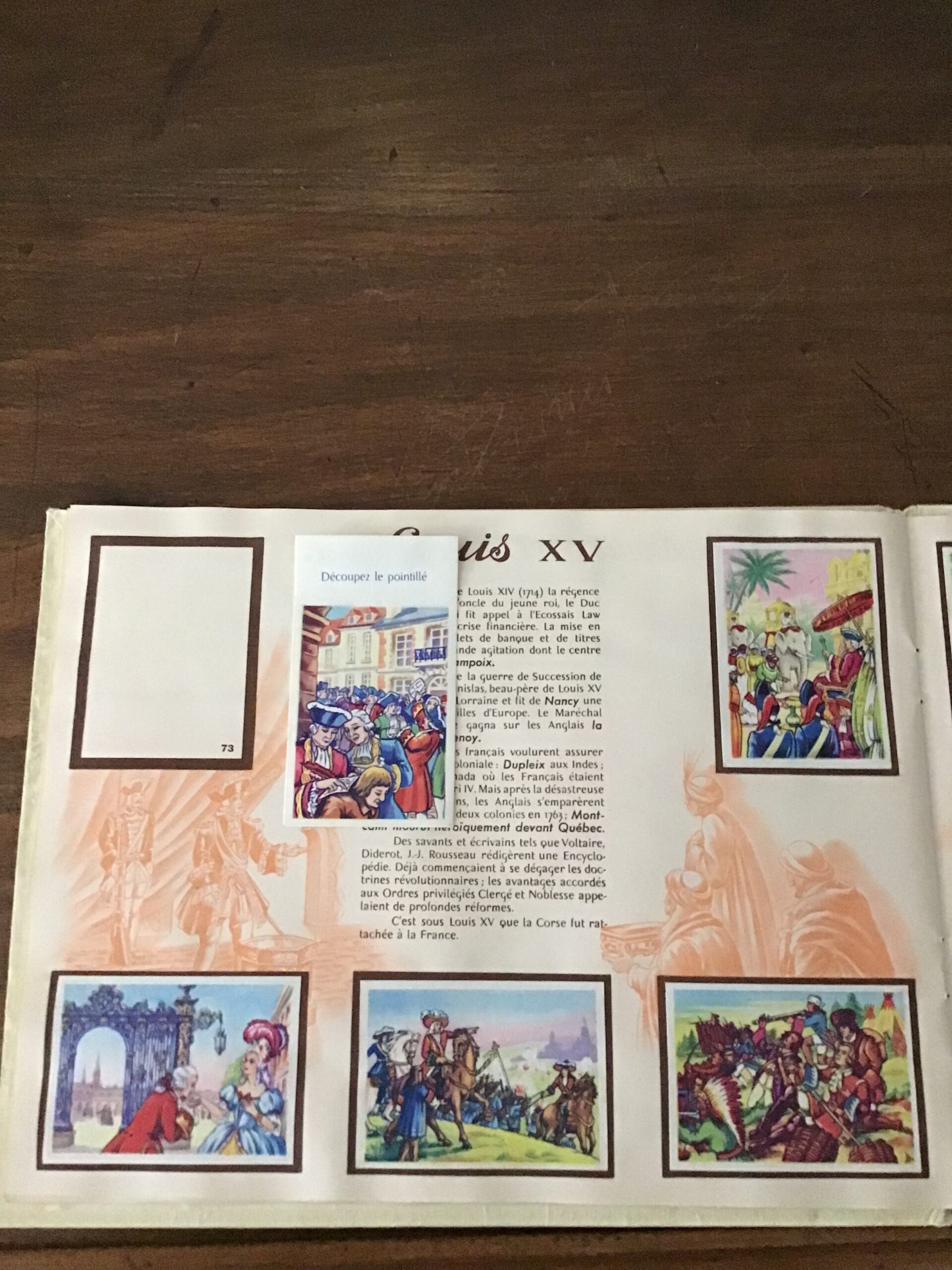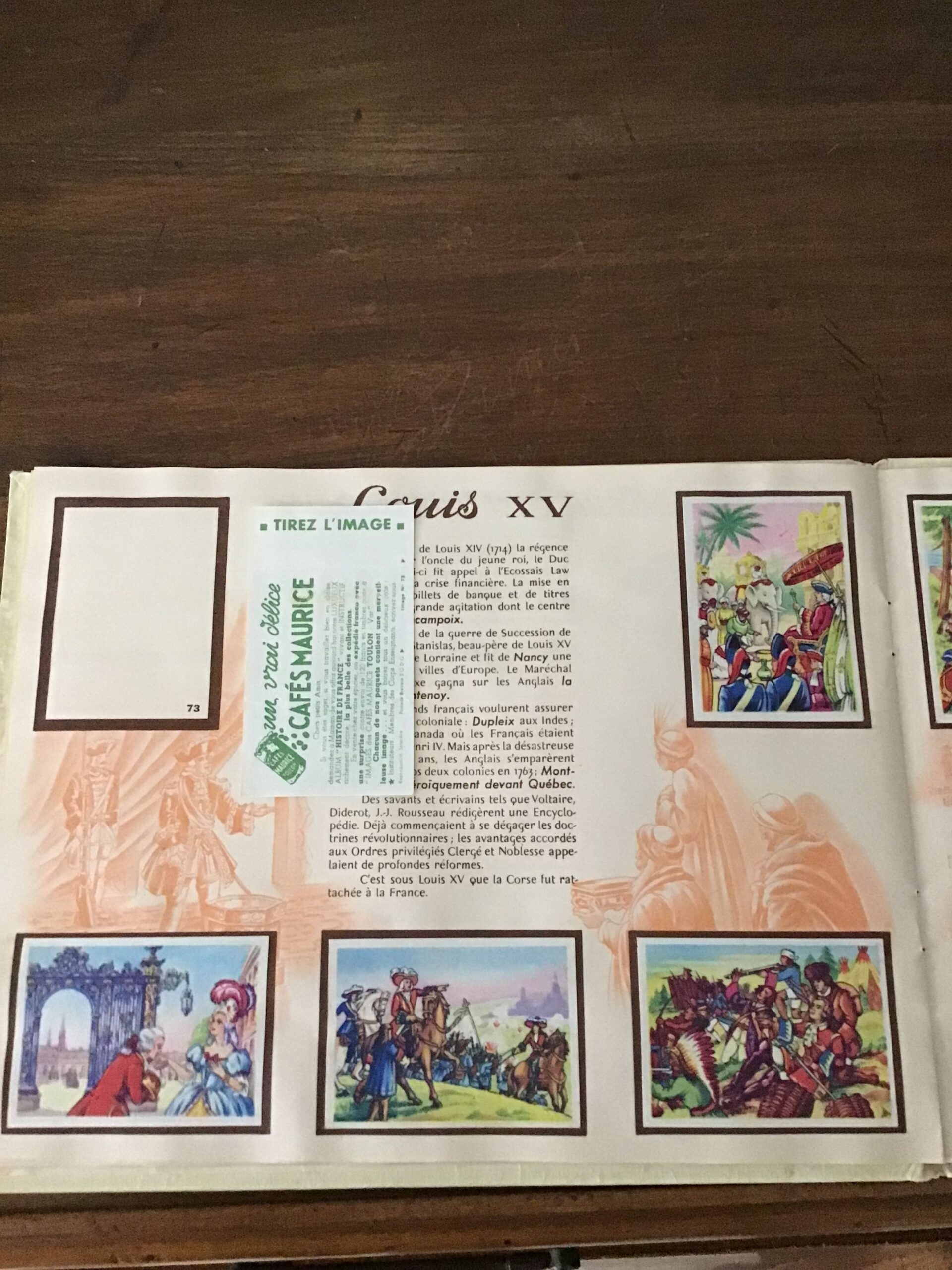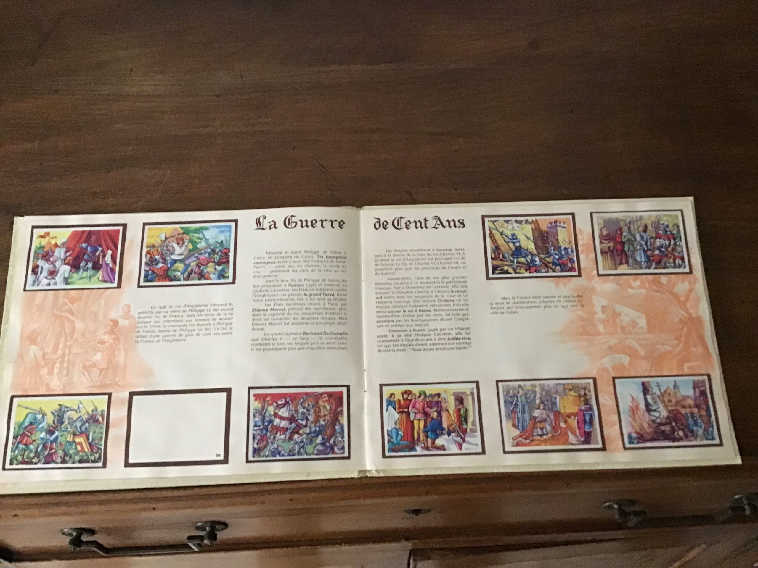 118 images ont été collées par le propriétaire de cet album, une (la 73) est présente mais n’a pas été découpée ni collée; l’image 36 appartenant à la série des 10 illustrant la guerre de 100 ans est manquante.