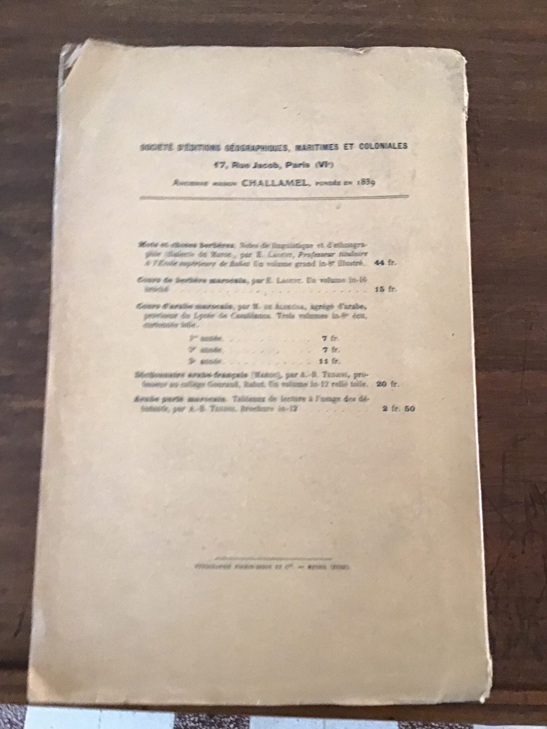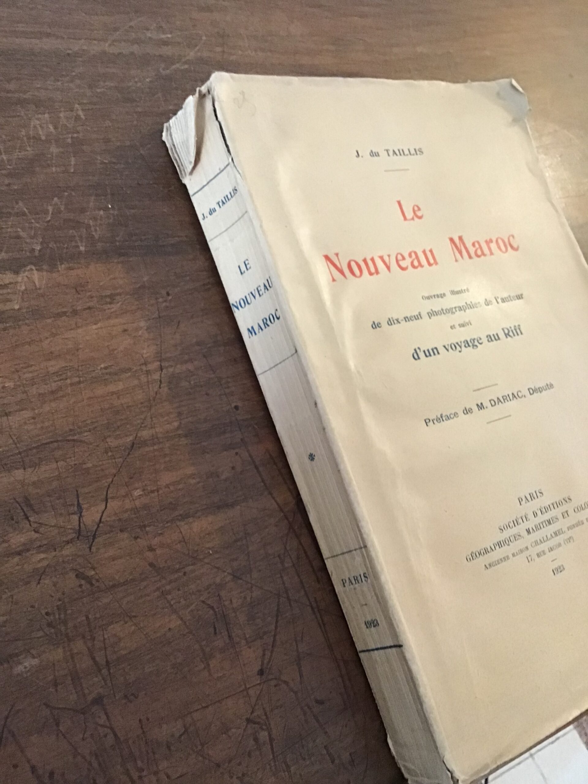 J. du TAILLIS/ Le nouveau Maroc/ suivi d’un voyage au Riff/ ouvrage illustré de 19 photographies de l’auteur/ Préface de M.DARIAC/ Société d’Éditions Géographiques, Maritimes et Coloniales 1923