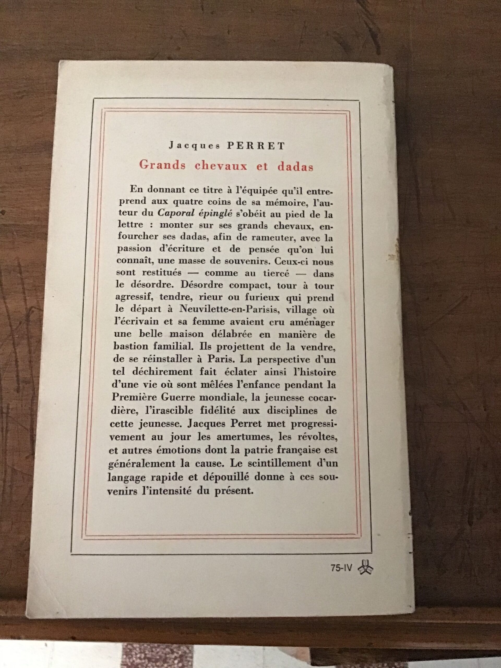 Jacques PERRET/ Grands Chevaux et Dadas/ Souvenirs/ Éditions NRF GALLIMARD 1975
