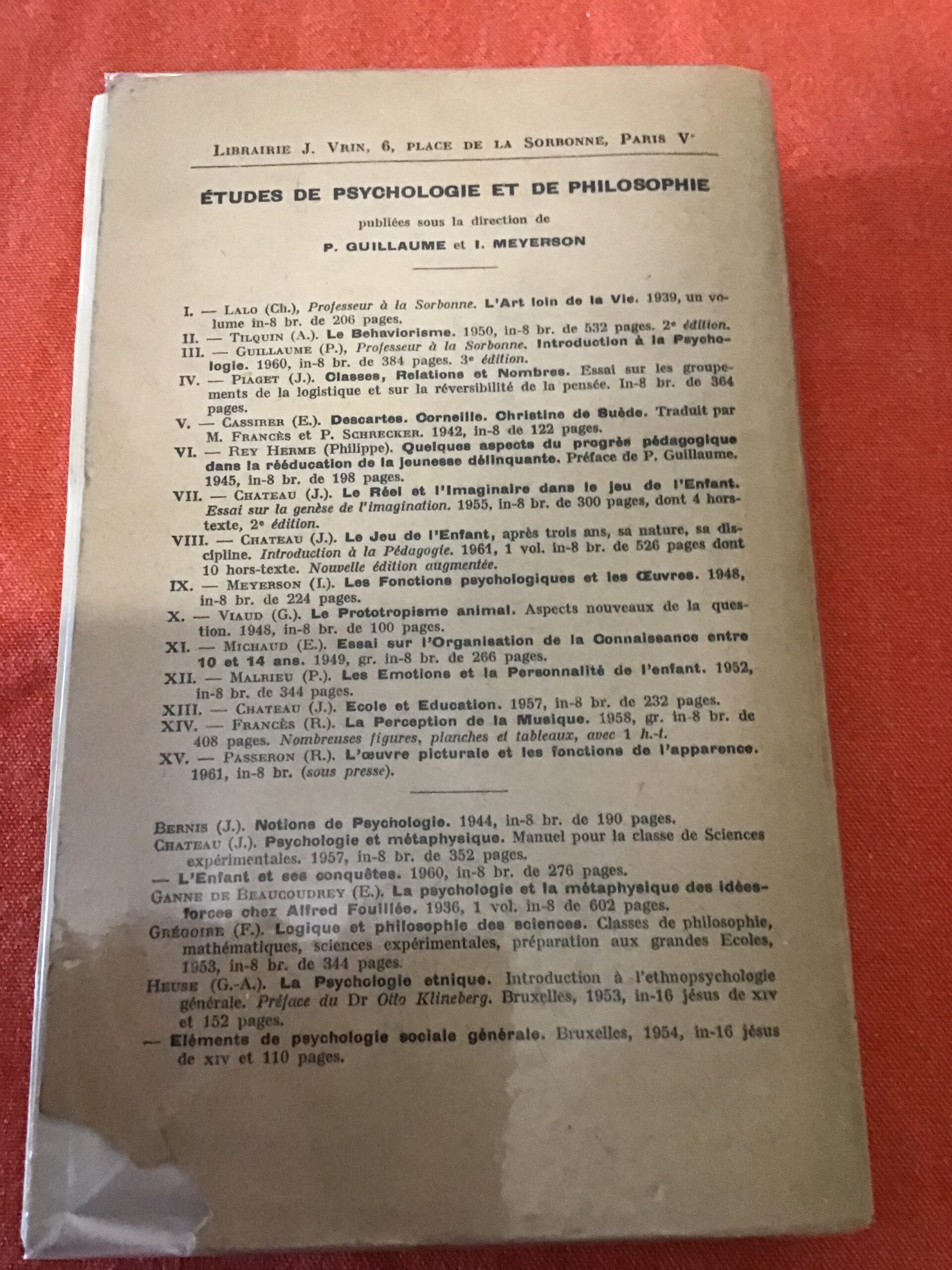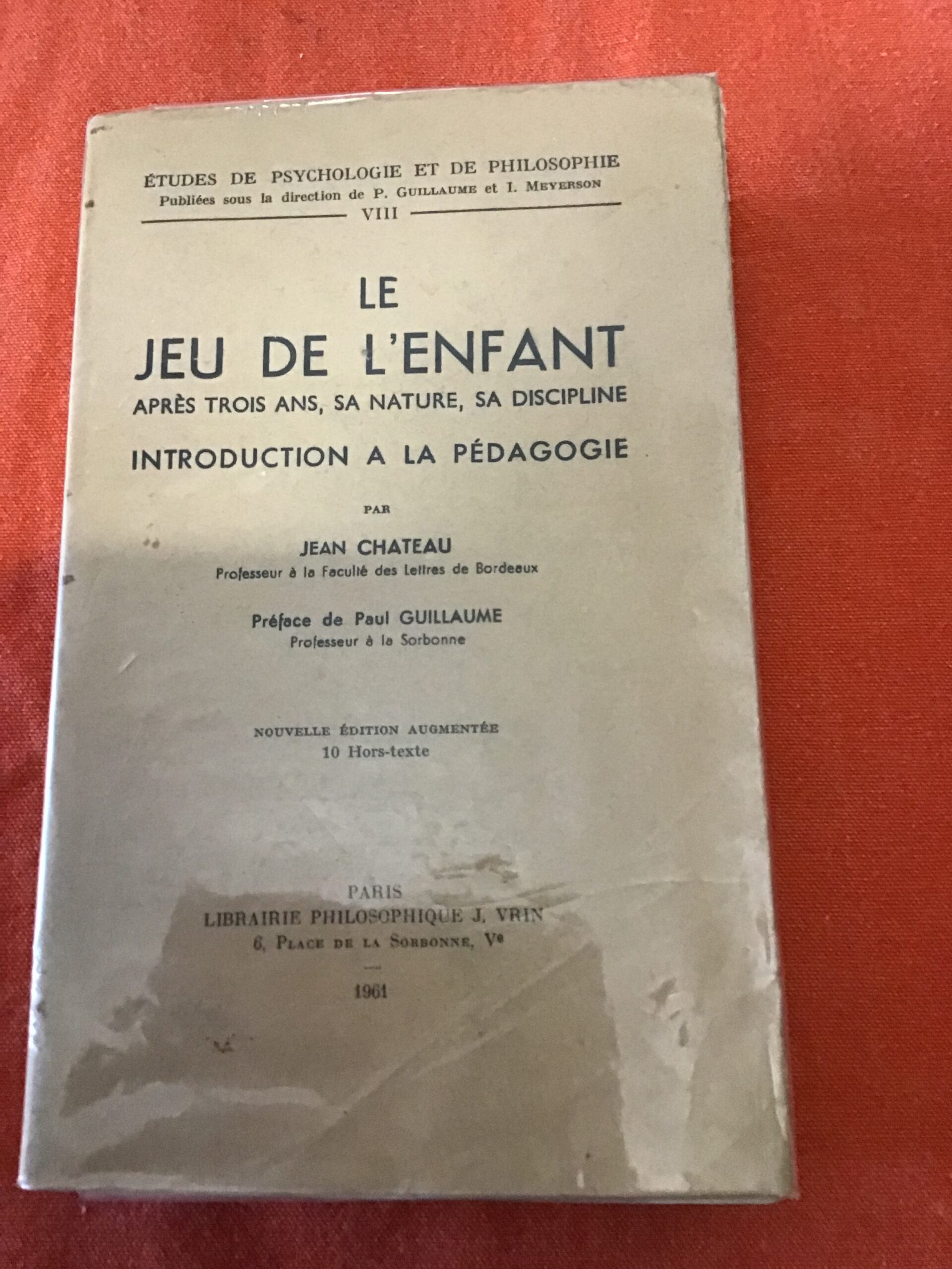 Jean CHATEAU/ Le Jeu de l’Enfant: après 3 ans, sa nature, sa discipline/ Introduction à la Pédagogie/ Préface de Paul GUILLAUME/ Collection « Études de Psychologie et de Philosophie »/ Librairie Philosophique VRIN 1961