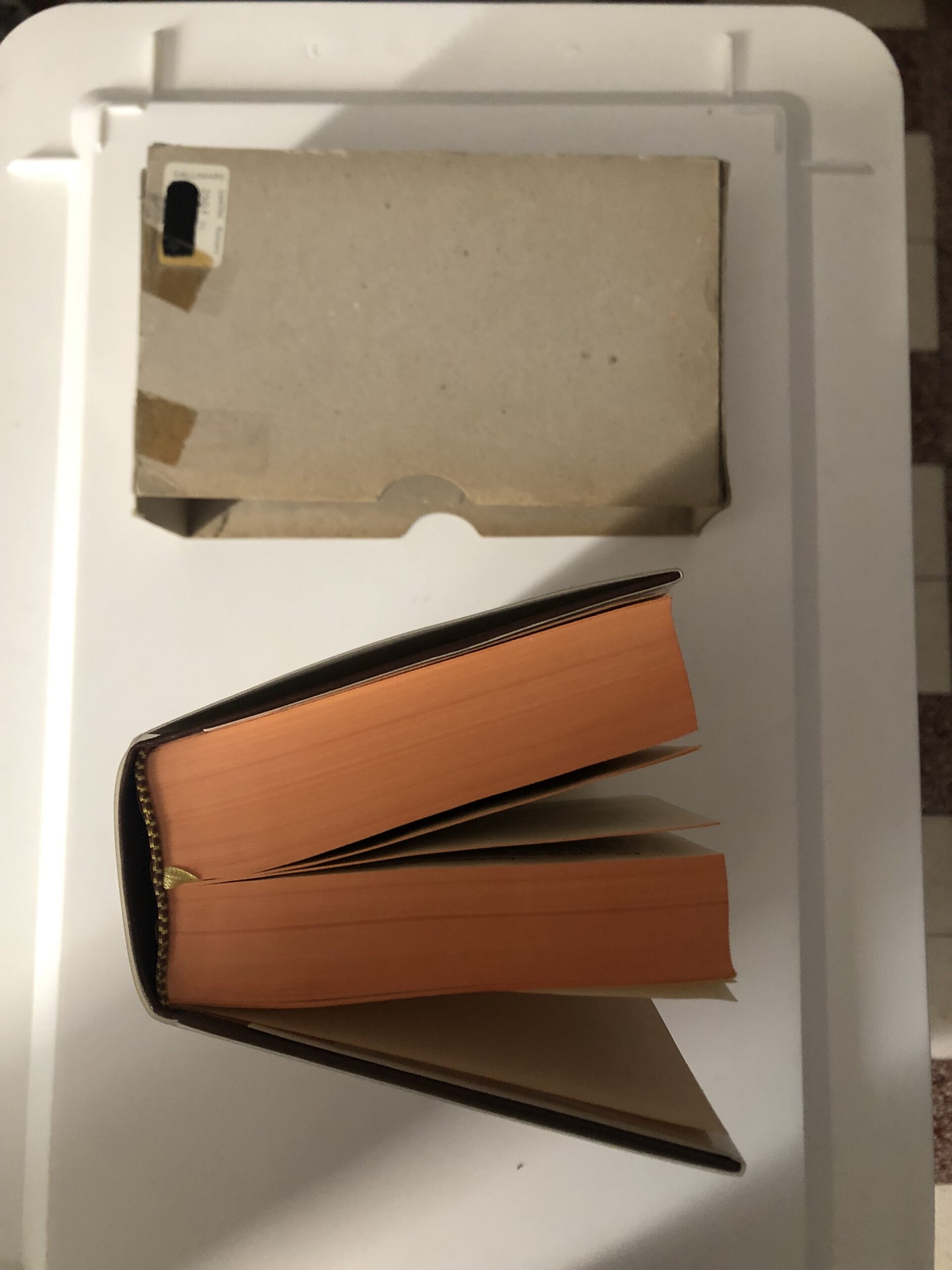 Ouvrage relié, imprimé sur papier bible, 2 signets, Rhodoïd, emboîtage en carton brut (rafistolé)