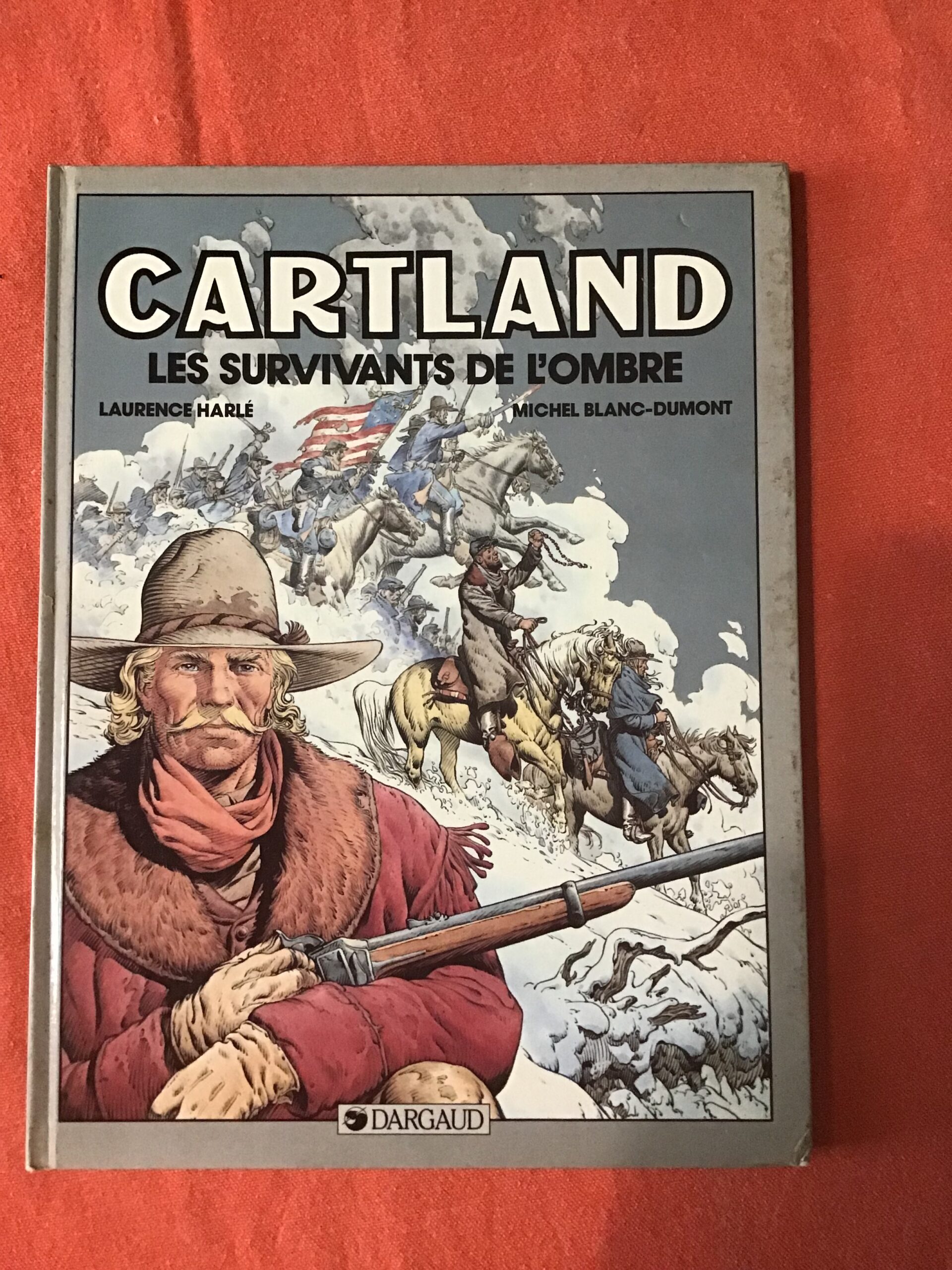 Jonathan CARTLAND/ Les survivants de l’ombre / écriture: Laurence HARLE/ dessins: Michel BLANC-DUMONT/ couleurs de Claudine BLANC-DUMONT/ Collection « Western »/ Éditions DARGAUD/ Édition Originale de 1987.