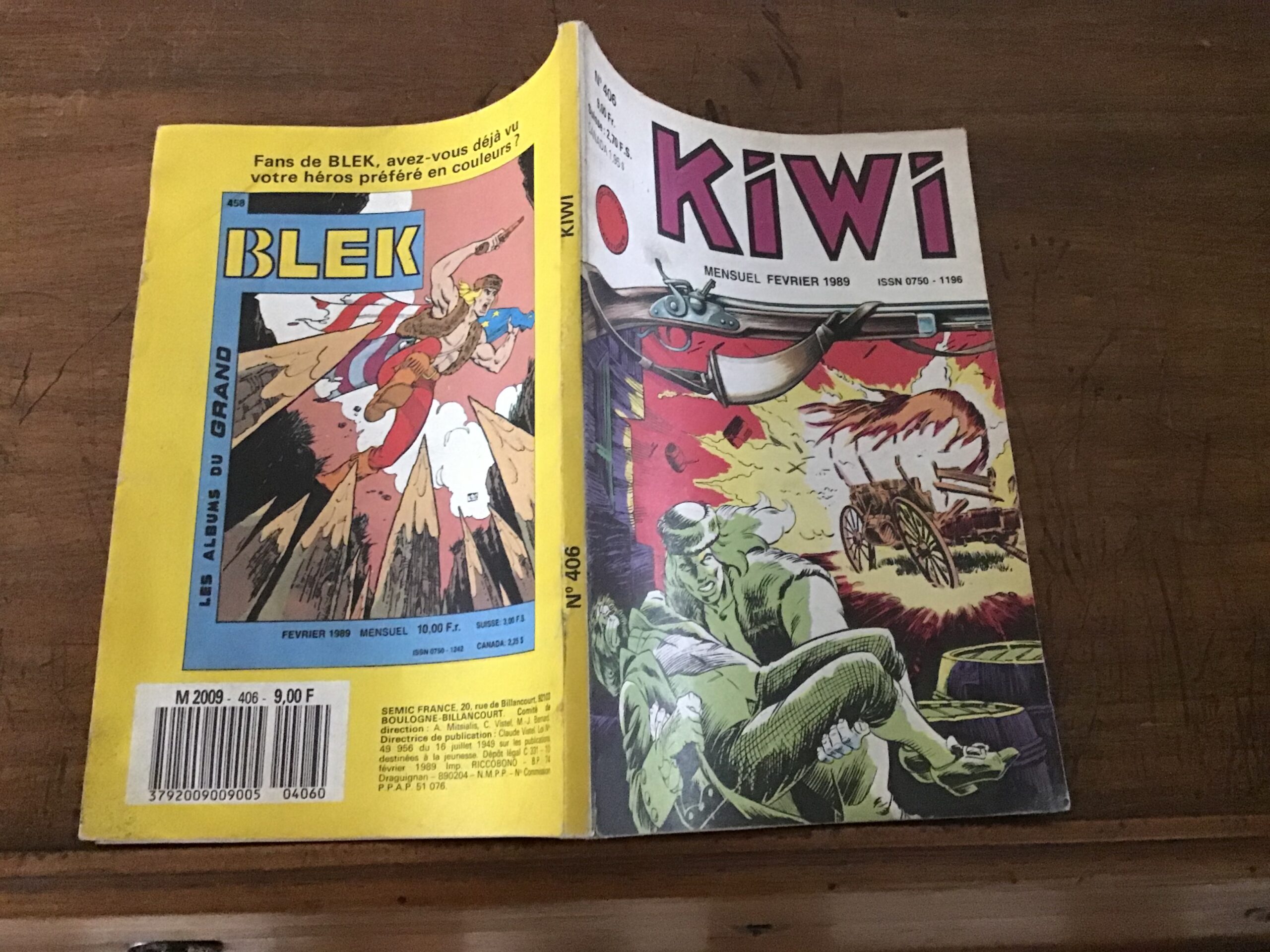 in-12 agrafé, couverture illustrée en couleurs, bande dessinée noir et blanc.
