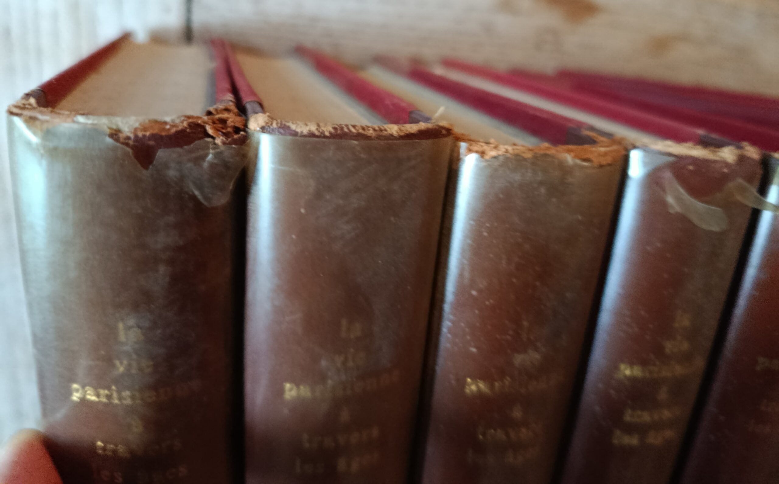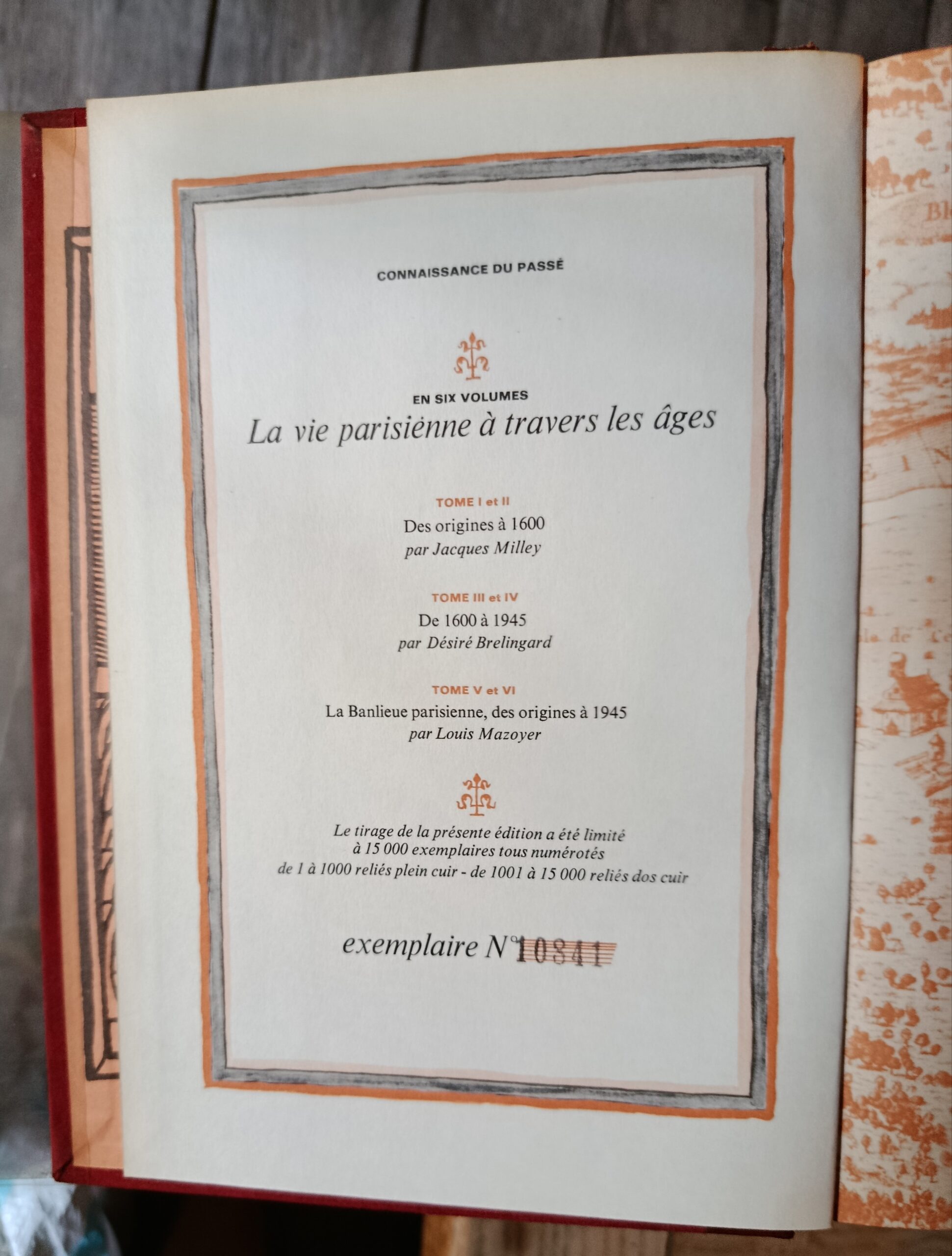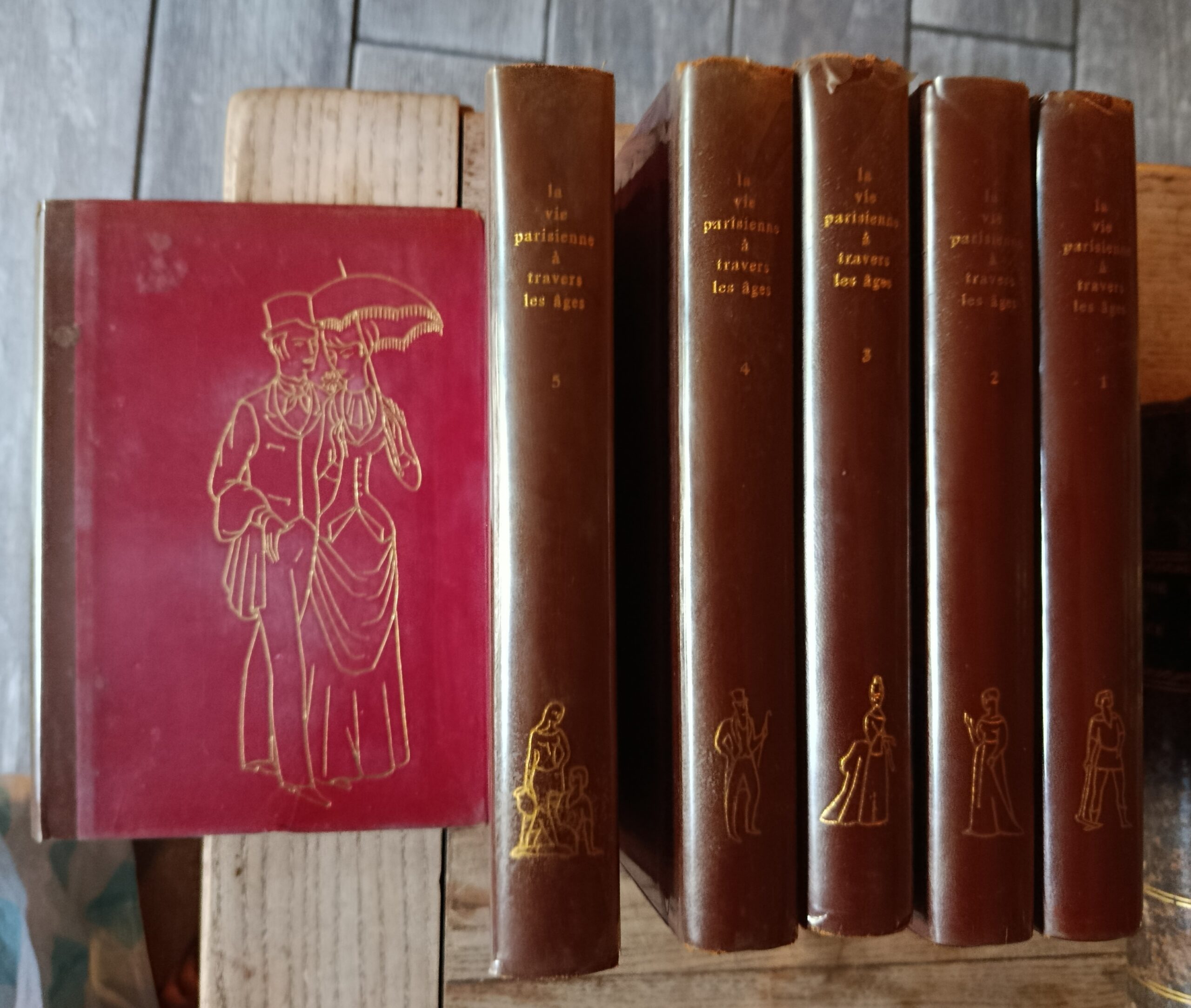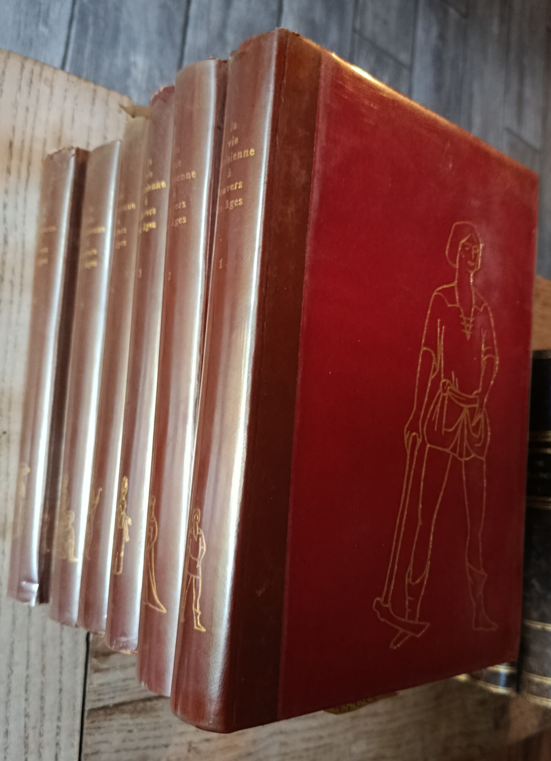 1965, Société continentale Editions Modernes Illustrées, série complète de 6 volumes demi-cuir marron, velours rouges sur les plats, dorures sur plats et dos, rhodoïd, collection Connaissance du passé, reliure de Boutan-Marguin, illustrations héliogravures hors texte couleurs, numéroté 10841/14000.