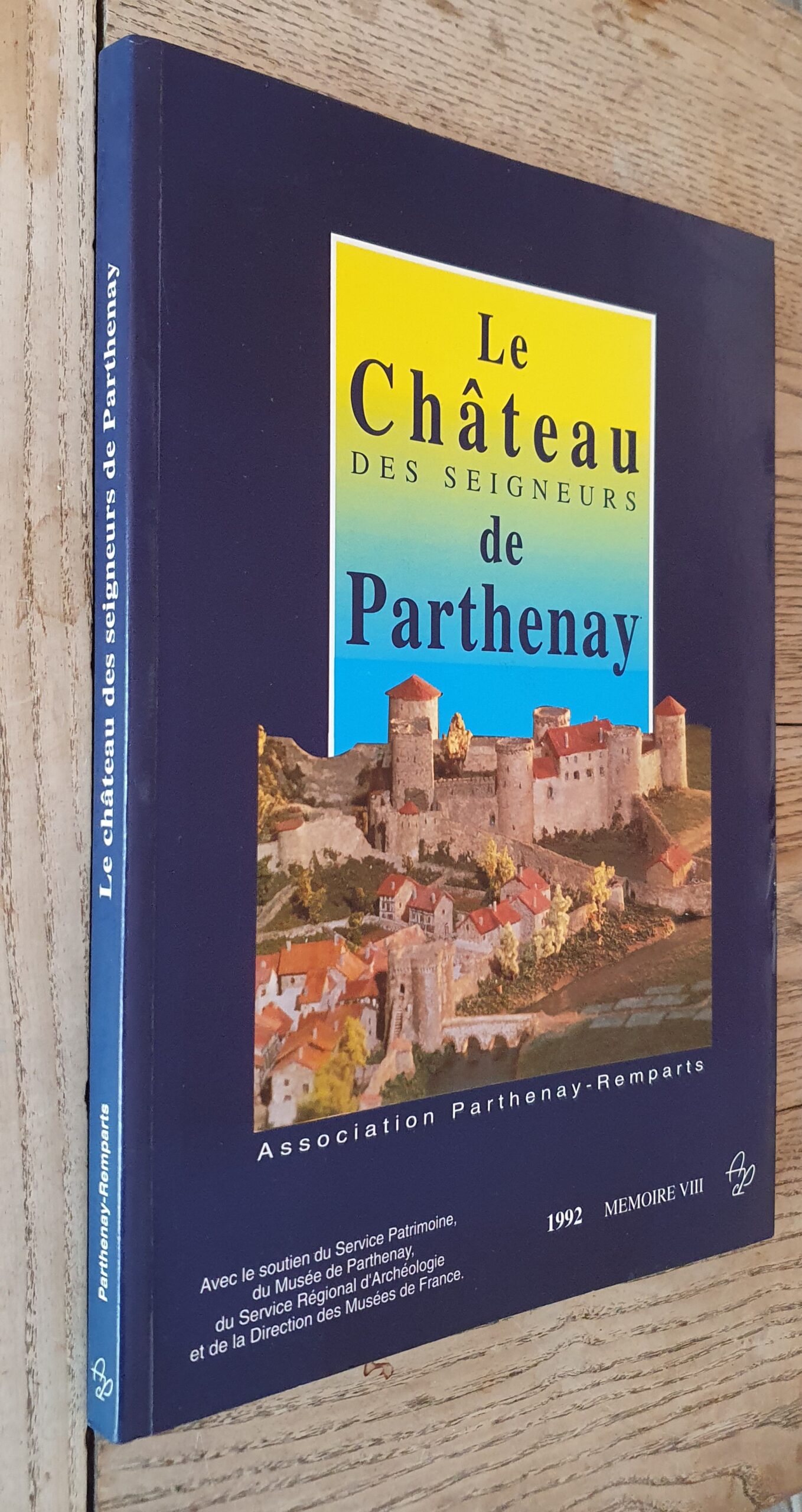 1992, Musée et service patrimoine de la ville de Parthenay, in-4 broché de 175 pages, couverture mauve rempliée illustrée en couleurs, titrage mauve, nombreuses illustrations et cartes noir et blanc, Le château des seigneurs de Parthenay