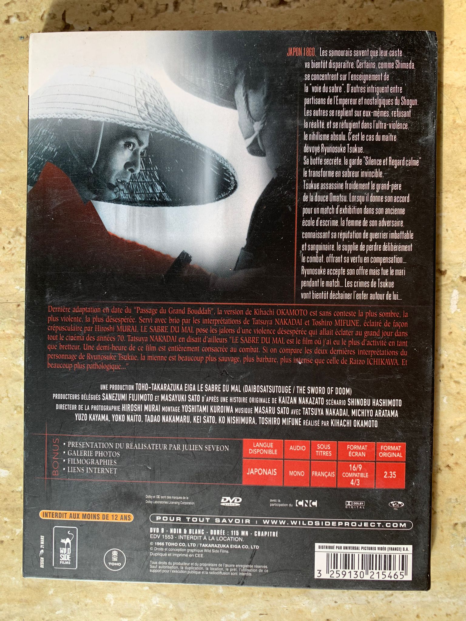 Le Sabre du mal / Sword of Doom / Kihachi Okamoto / Tatsuya Nakadai / Toshiro Mifune / Les introuvables / DVD vidéo