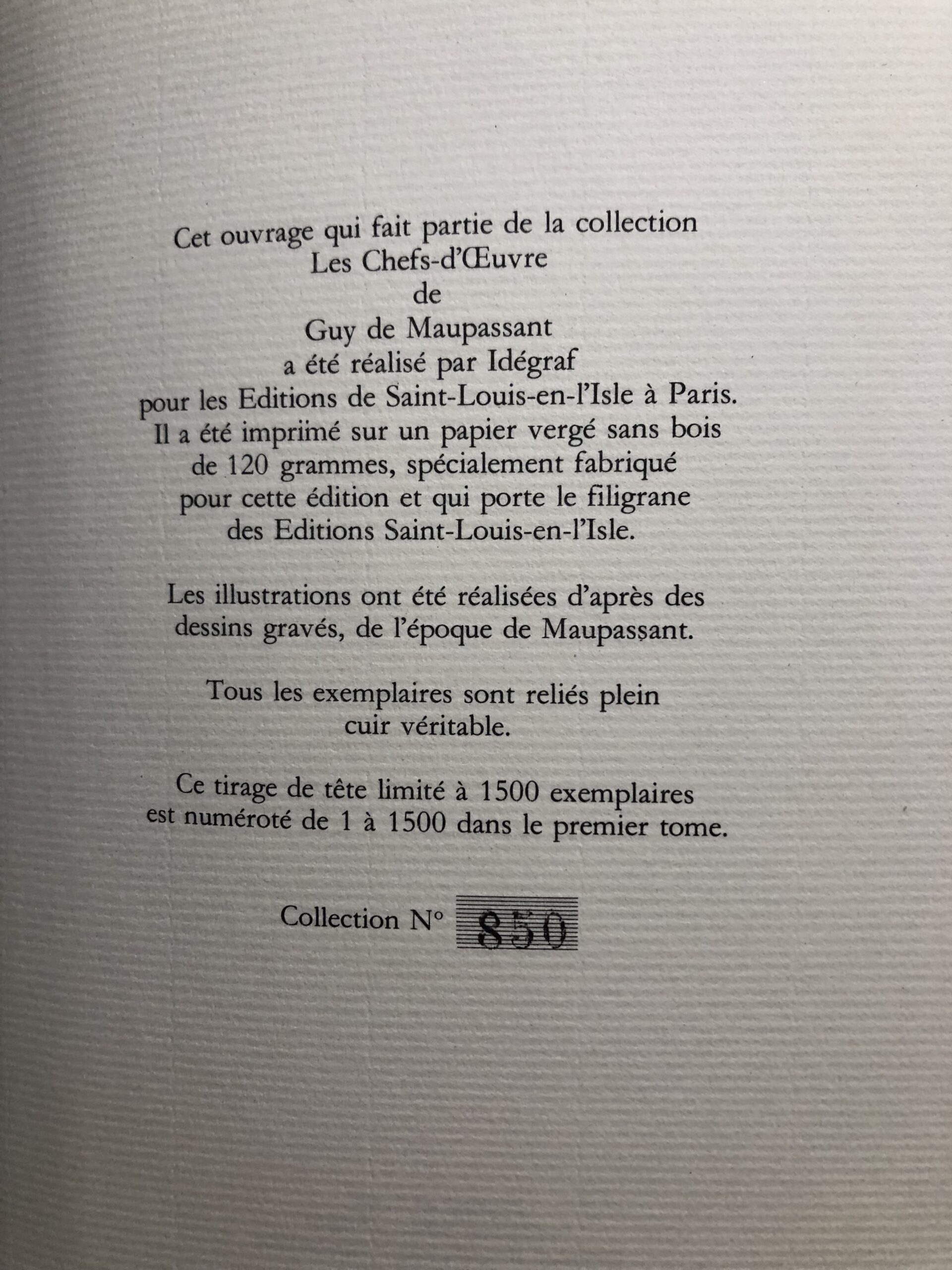 Très belle édition (numérotée 850 sur 1500) sur papier vergé sans bois de 120 grammes, filigrané.