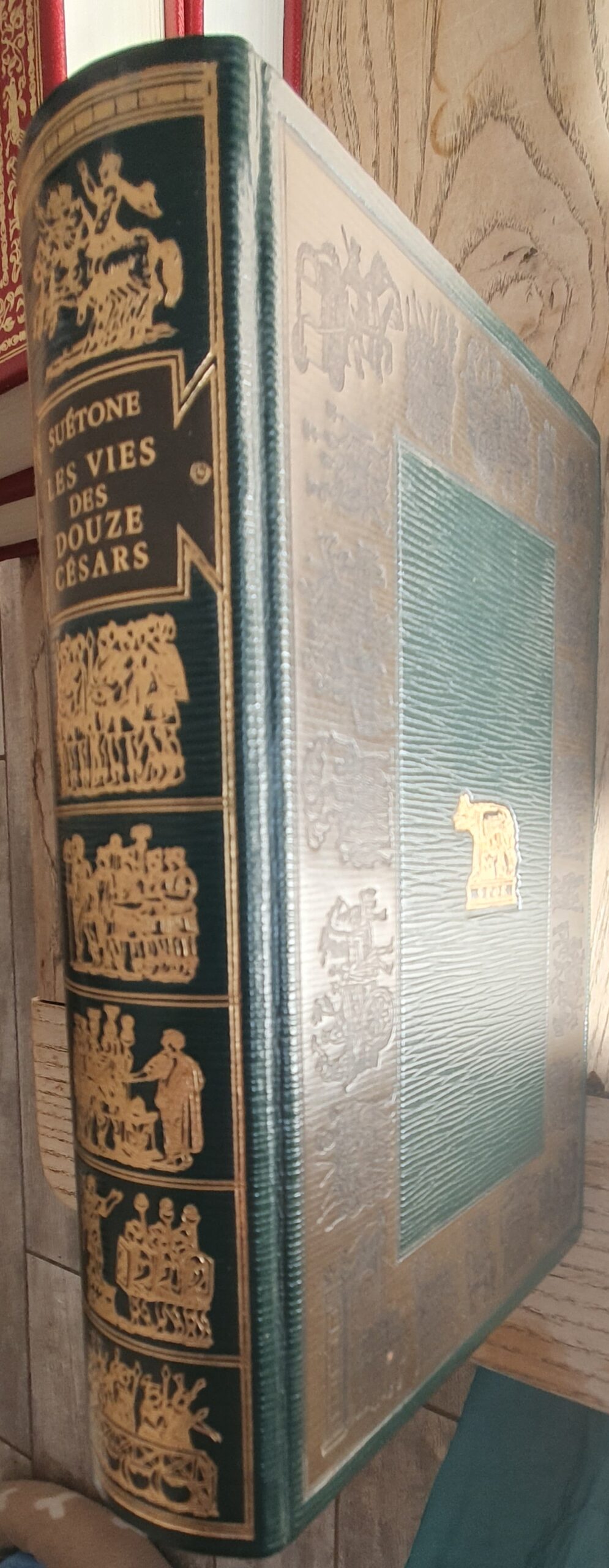 1970, Jean de Bonnot, in-8 reliure éditeur plein cuir vert et brun, titrage et décors dorés sur le dos et les plats. Jules César, Auguste, Tibère, Caius Caligula, Claude, Néron, Galba, Othon, Vitellius, Vespasien, Titus, Domitien.