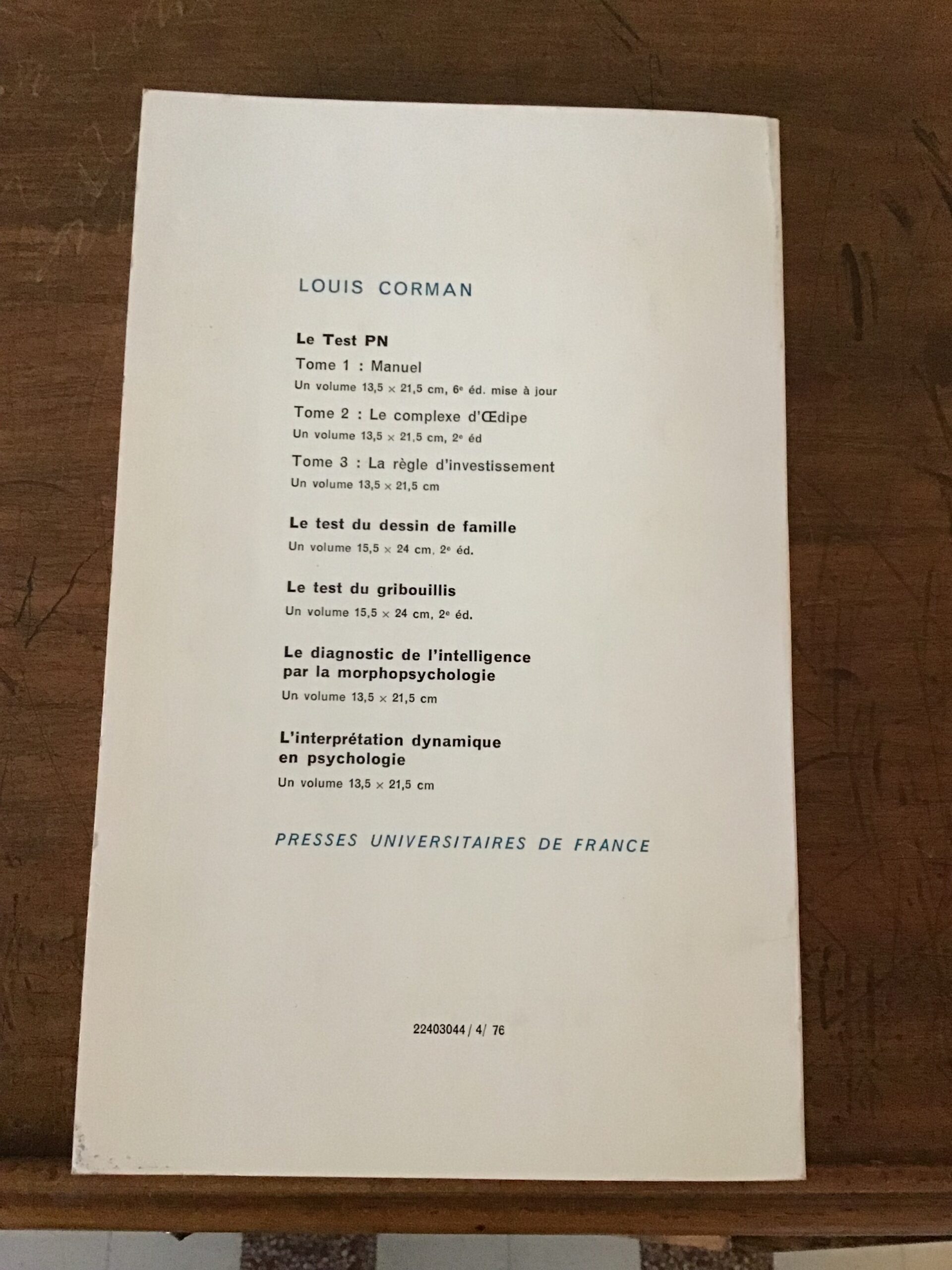 Louis CORMAN/ Le Test PN/ Manuel 3: la règle d’investissement/ Presses Universitaires de France 1976