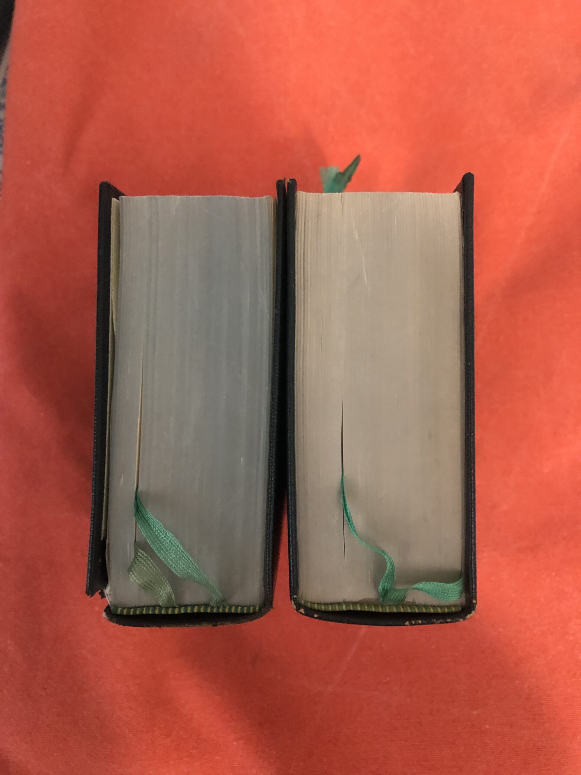 10,8X17,5 cm 87 mm d’épaisseur 1530 et 1685 pages 617 et 672 grammes