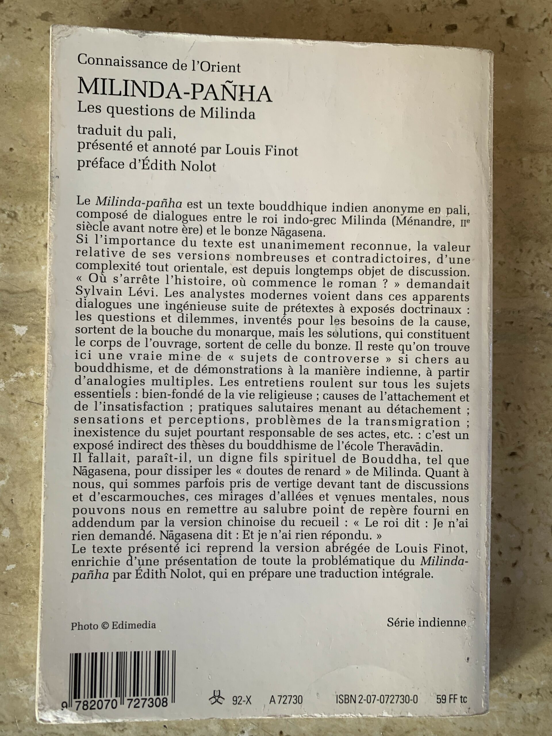 quantité de Milinda-Panha / Les questions de Milinda / Connaissance de l'Orient / éditions Gallimard