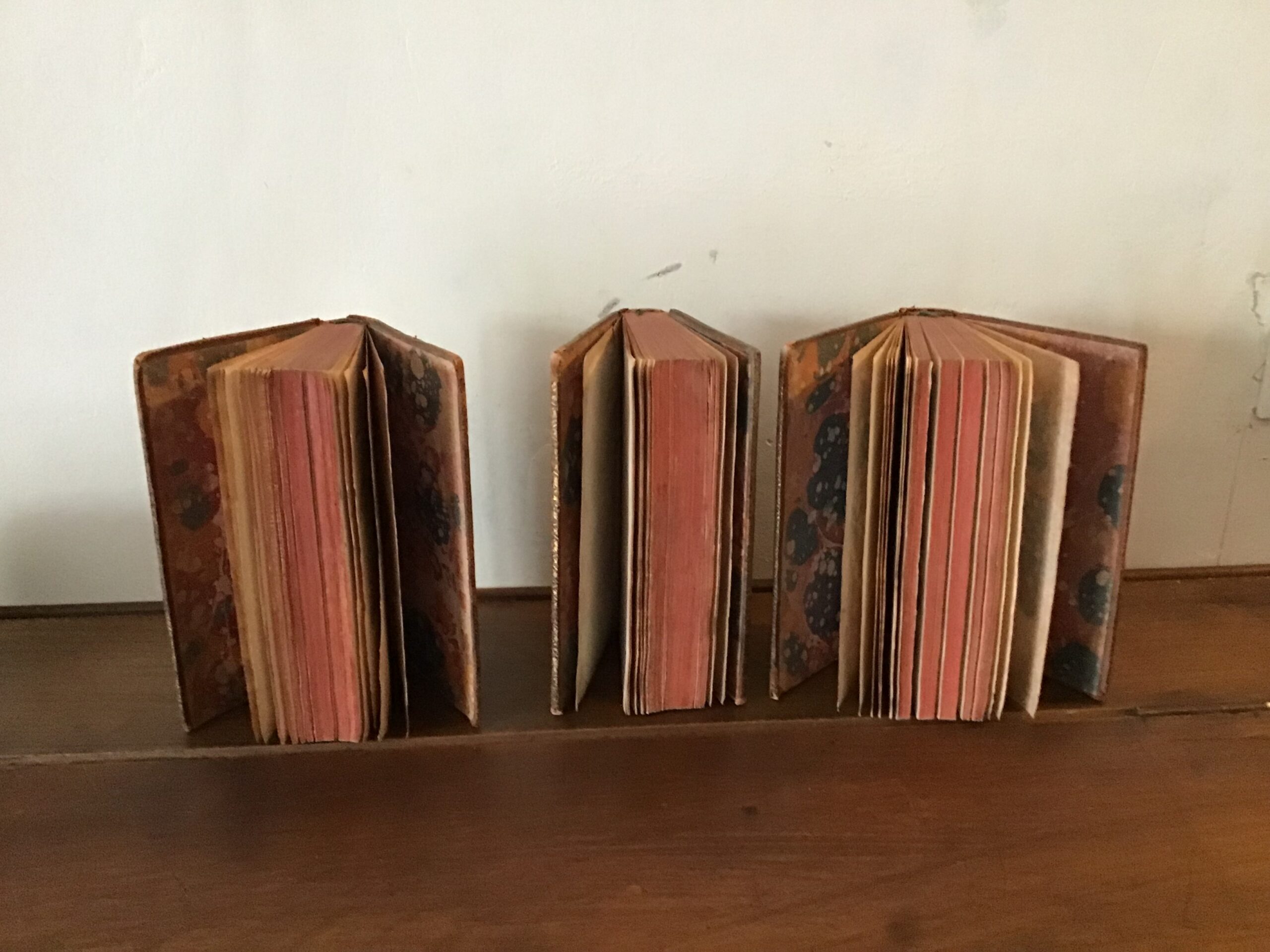 3 ouvrages reliés, signets, couvertures rigides 9X14,5 cm épaisseur totale 7 cm