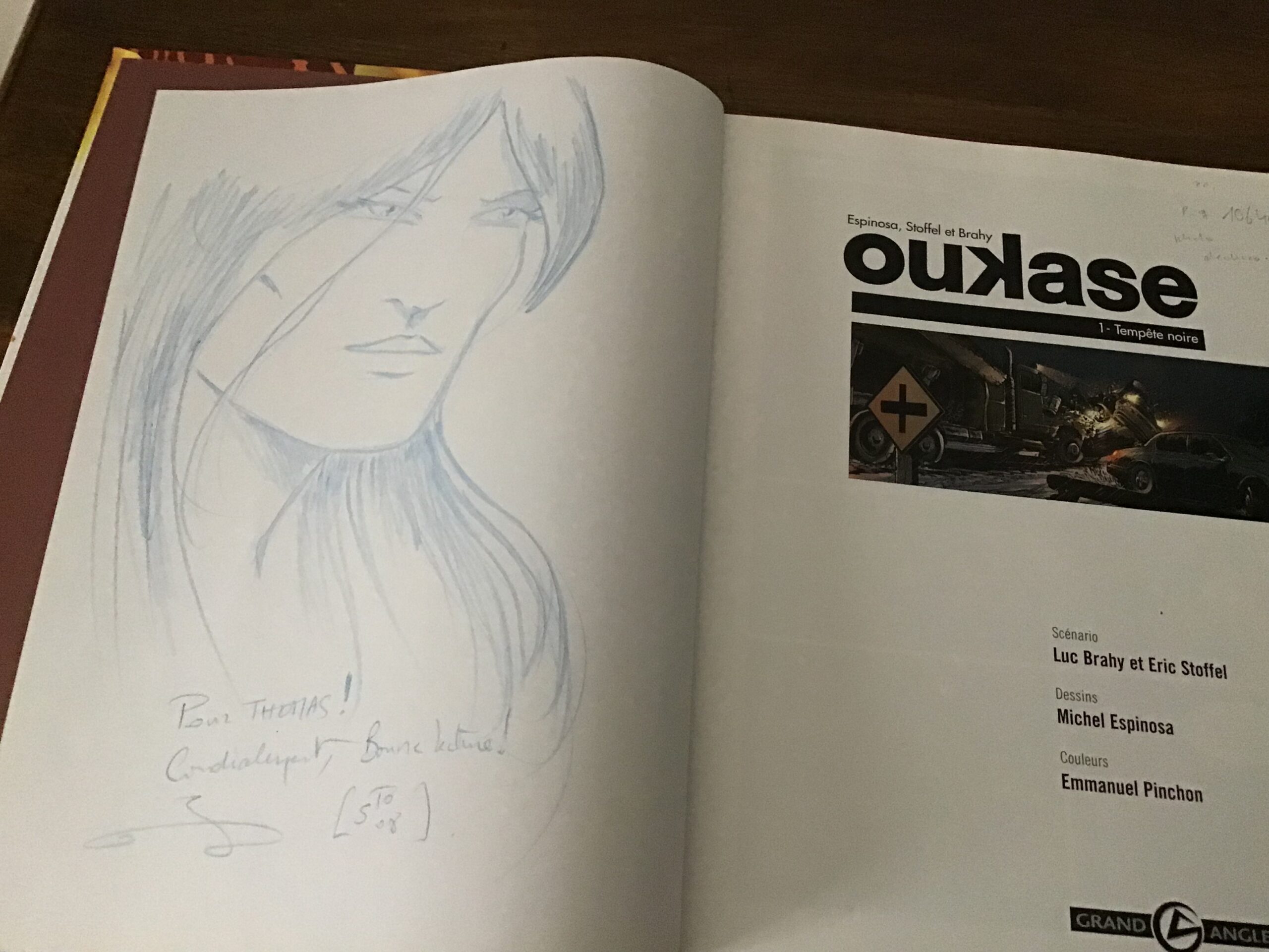 OUKASE/ tome 1: Tempête noire/ Scénario: Luc BRAHY et Éric STOFFEL/ Dessins: Michel ESPINOSA/ Album de BD dédicacé/ Collection Grand Angle/ Éditions BAMBOO 2007