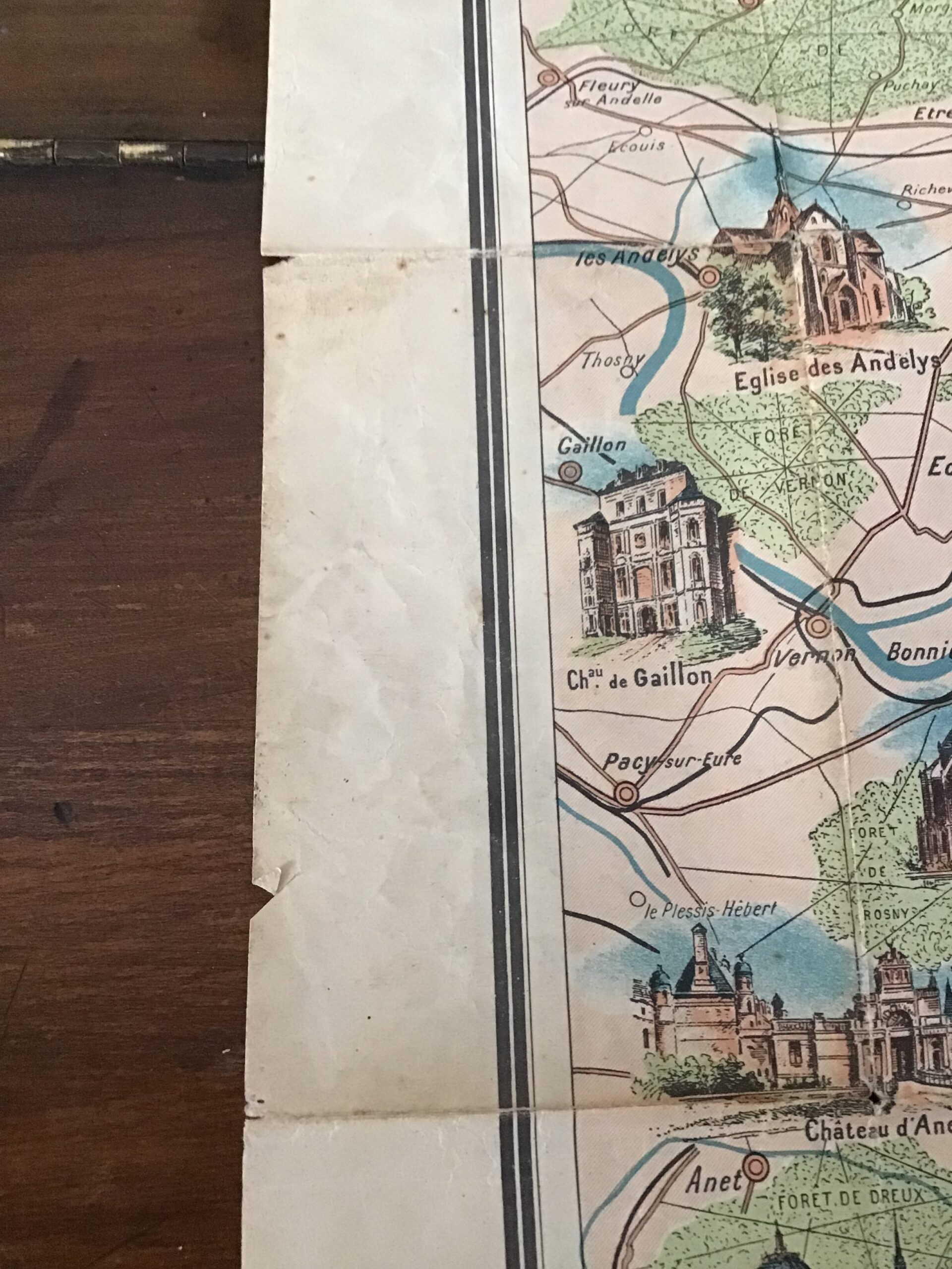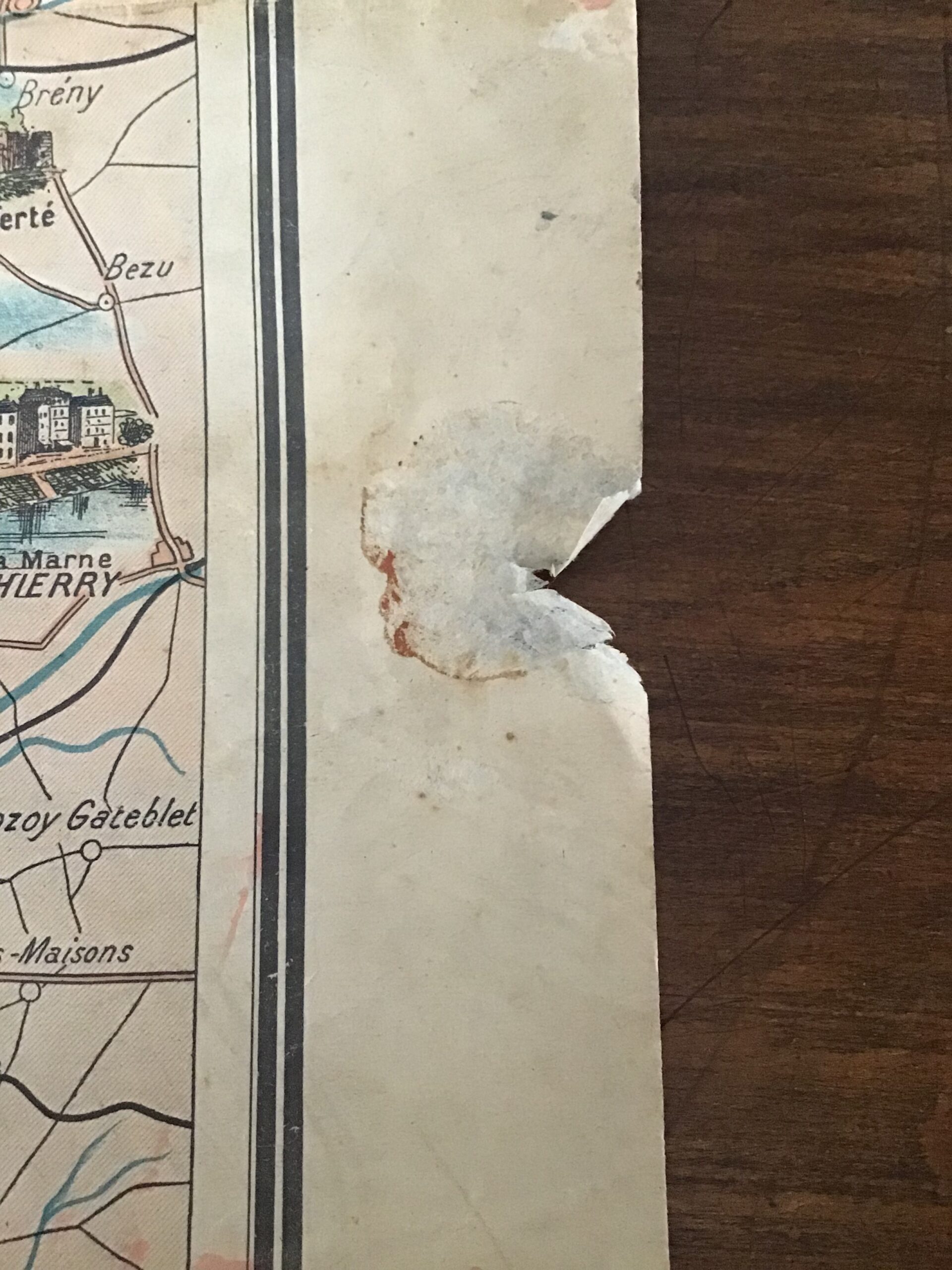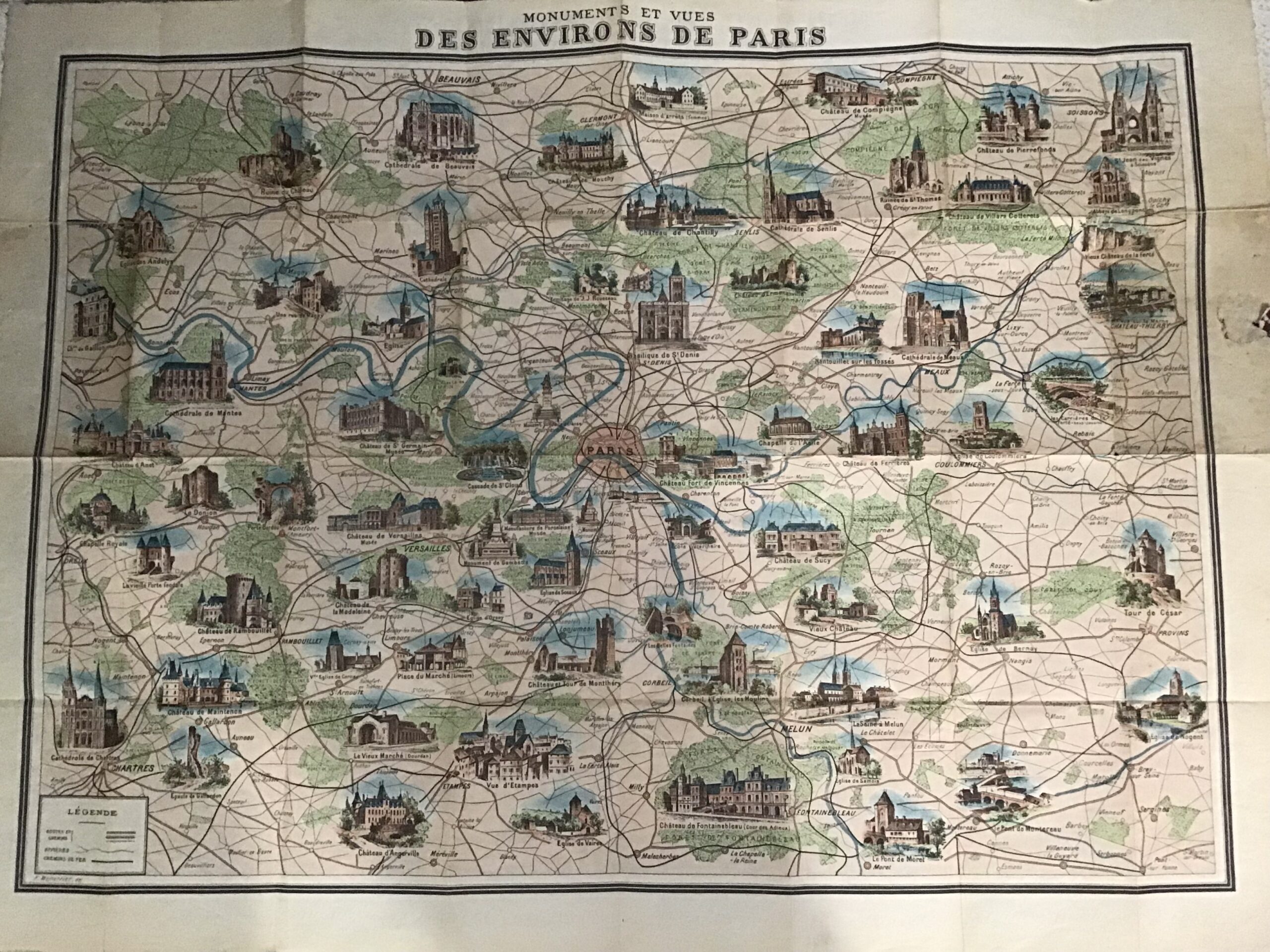 état acceptable: le plan déplié mesure 56×75,5 cm; ses plis sont marqués;  quelques petits accrocs des bords latéraux; mentions manuscrites au crayon de bois en bas du plan de Paris.