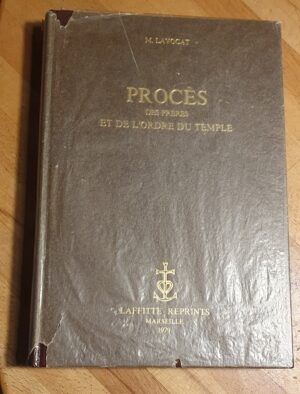 1979, Laffitte reprints, in-8 ski vertex marron de 420 pages, titrage et blason dorés, tirage à 500 exemplaires, réimpression de l’édition de Paris de 1888 mais pas de la BNF, Procès des frères et de l’ordre du Temple, d’après des pièces inédites publiées par M. Michelet et des documents imprimés anciens et nouveaux