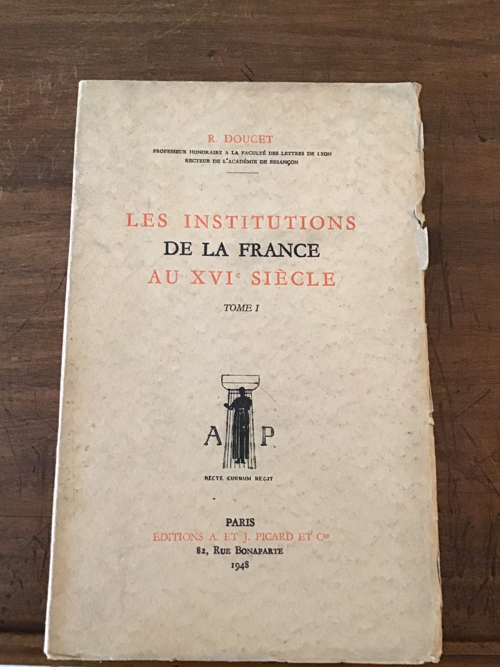 R.DOUCET/ Les Institutions de la France au XVI ème siècle/ Tome 1/ Éditions A. et J.PICARD et Cie 1948