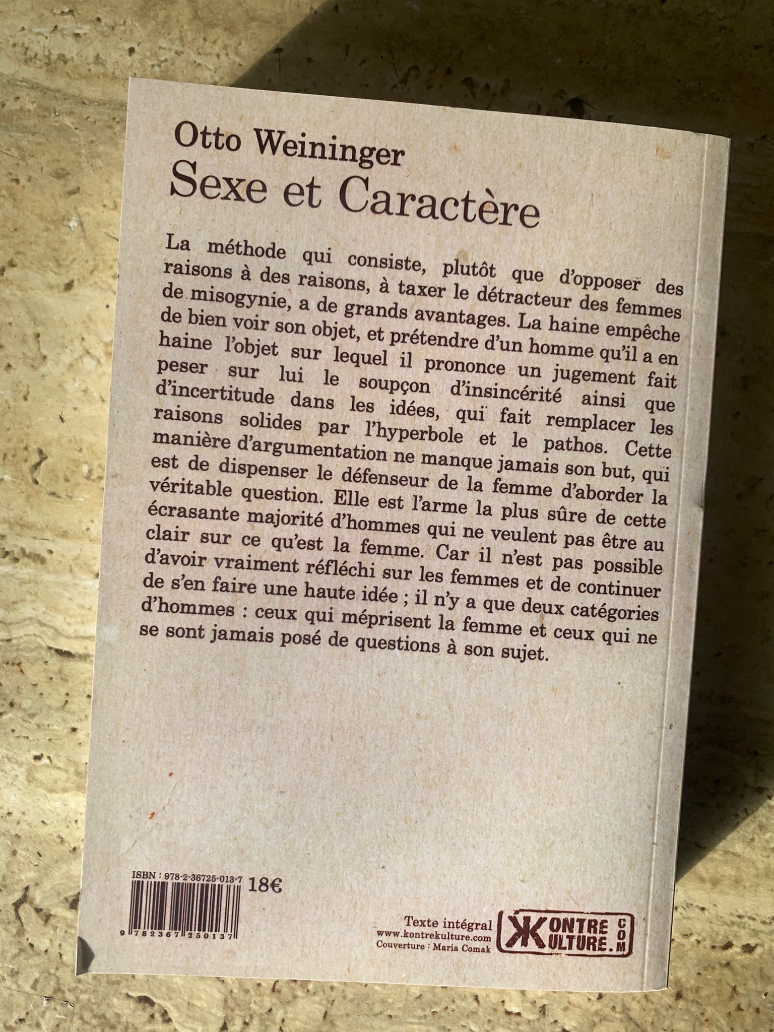 quantité de Sexe et caractère / Otto Weininger / éditions Kontre Kulture