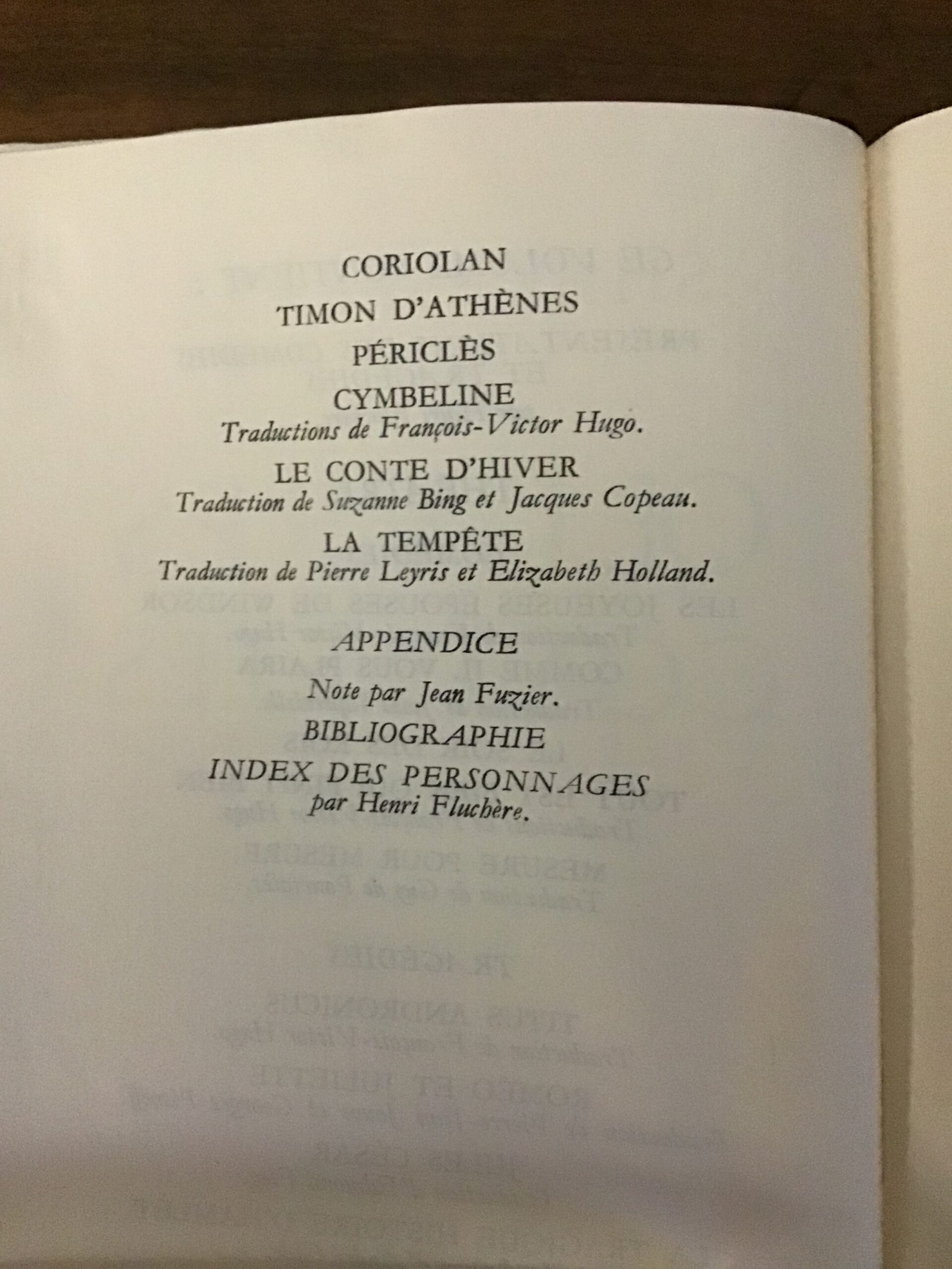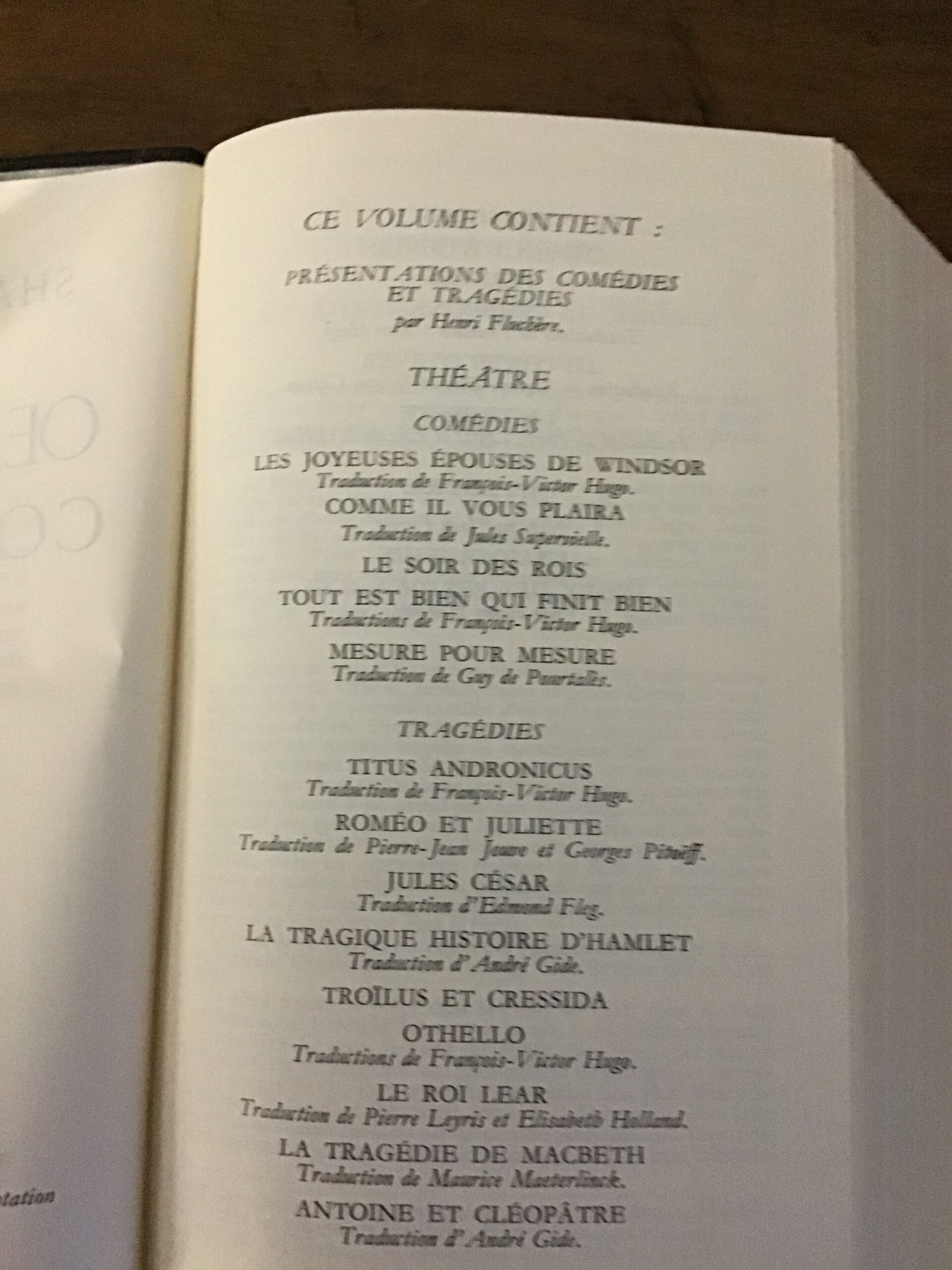 SHAKESPEARE/ Oeuvres Complètes II/ Théâtre: comédies II, tragédies avant-propos d’André Gide/ édition: Henri FLUCHÈRE/ Volume 51 de la « Bibliothèque de la Pléiade »/ Éditions NRF GALLIMARD/ édition de 1959, impression de 1963.