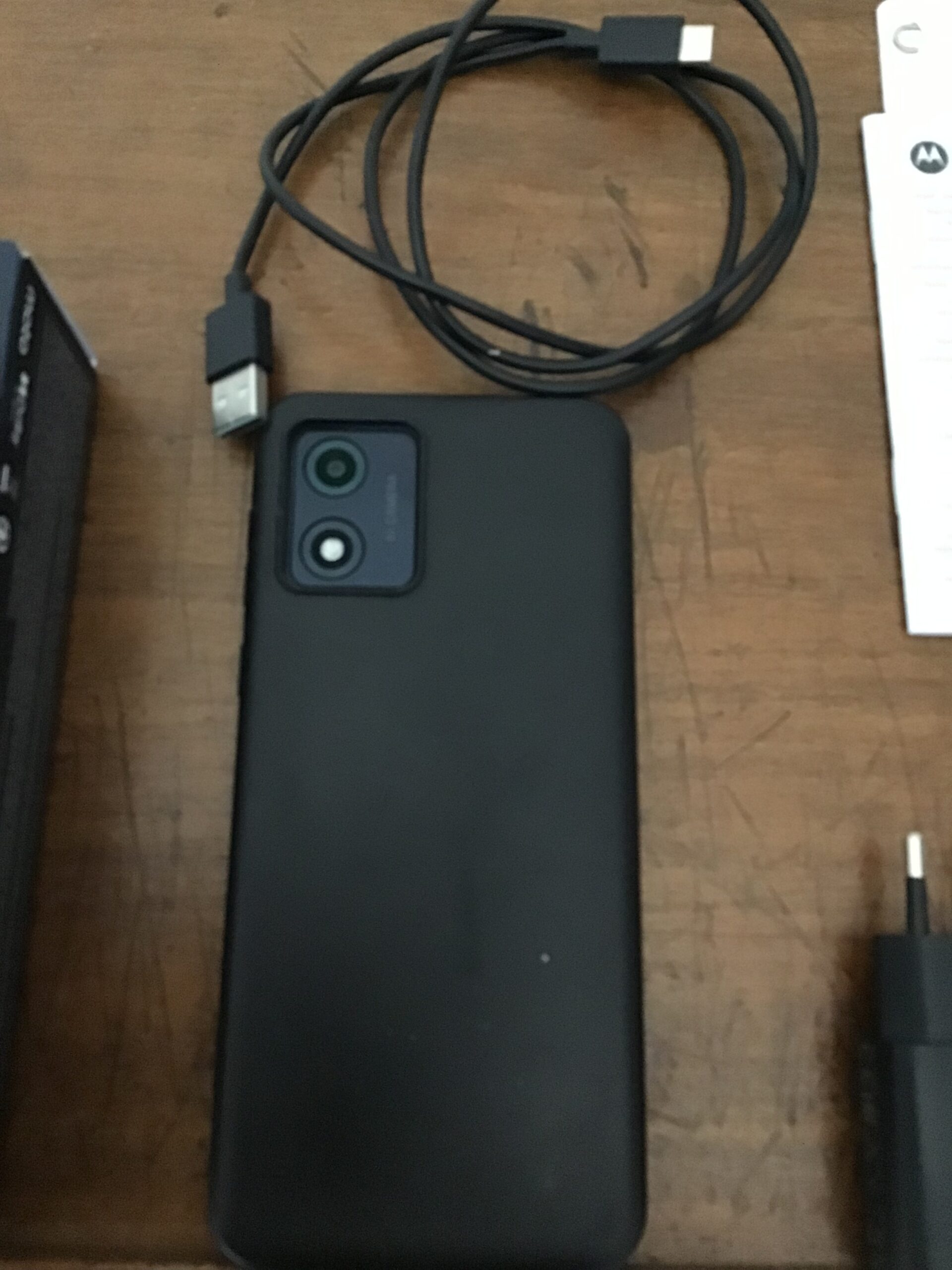téléphone vendu avec son chargeur et son cordon d’alimentation