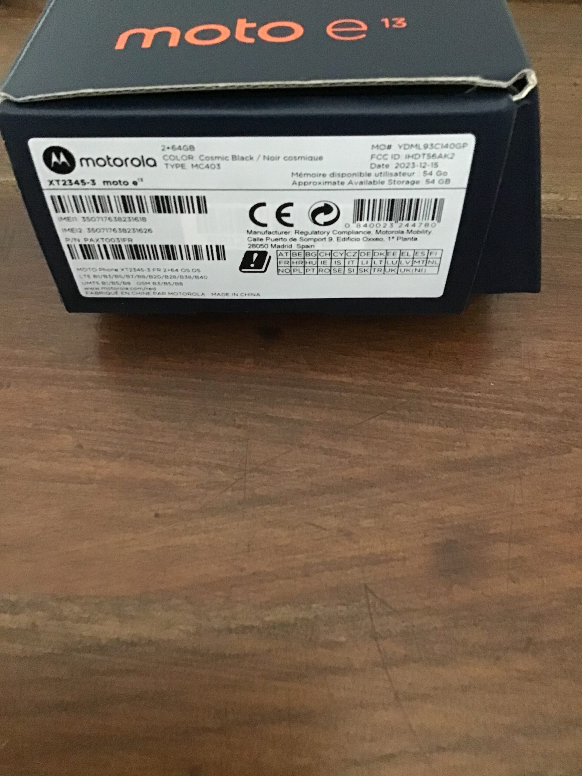 Smartphone MOTOROLA XT2345-3 e13 noir 2+64 GB