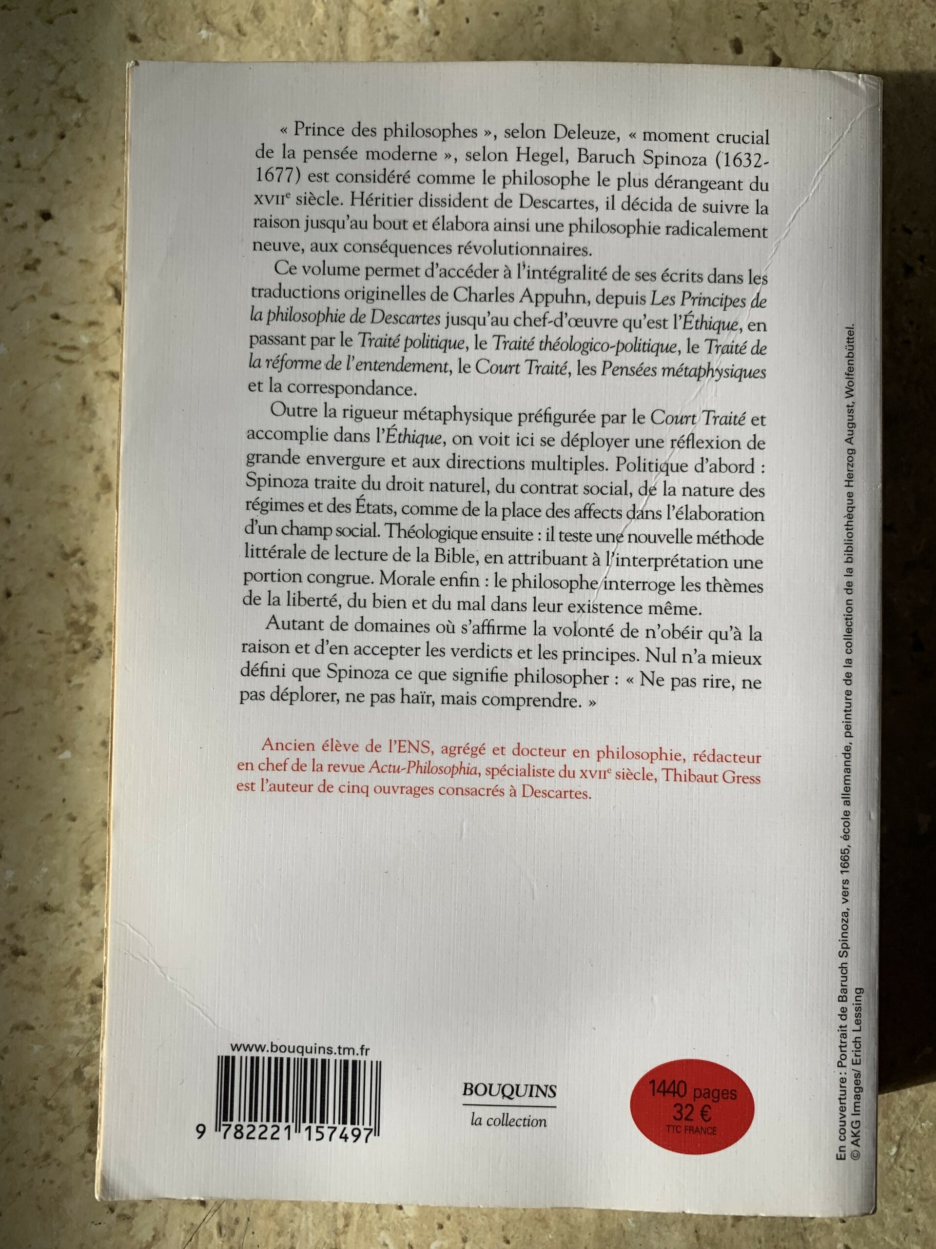 quantité de Spinoza / oeuvres complètes / édition établie et présentée par Thibaut Gress / éditions Bouquins