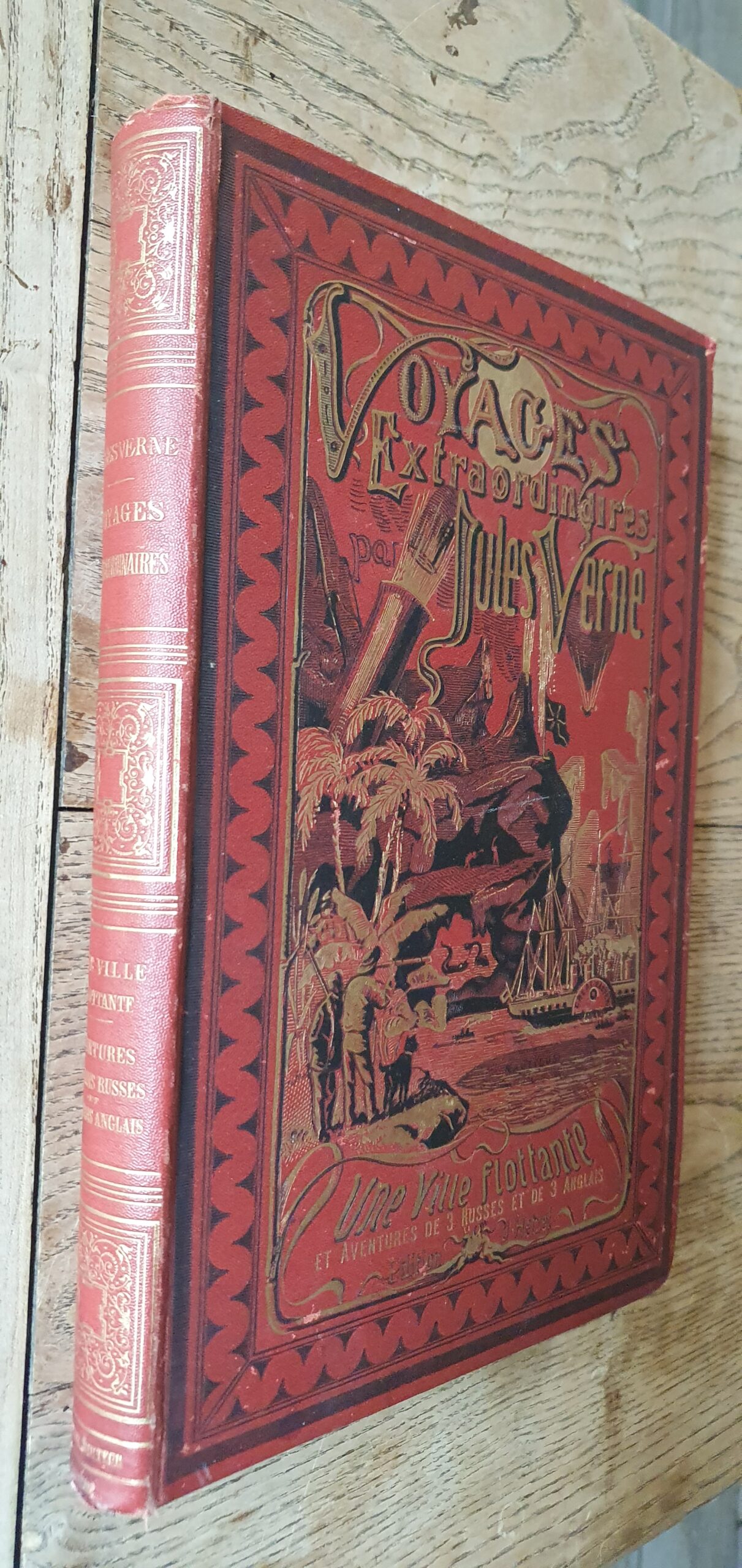 1872 ? 1872/1874, Les Voyages Extraordinaires, Collection Hetzel, in-4 reliure éditeur, cartonnage toilé, à l’obus, tranches dorées, vignettes par Ferat, gravure par Pannemaker et Hidibrand.