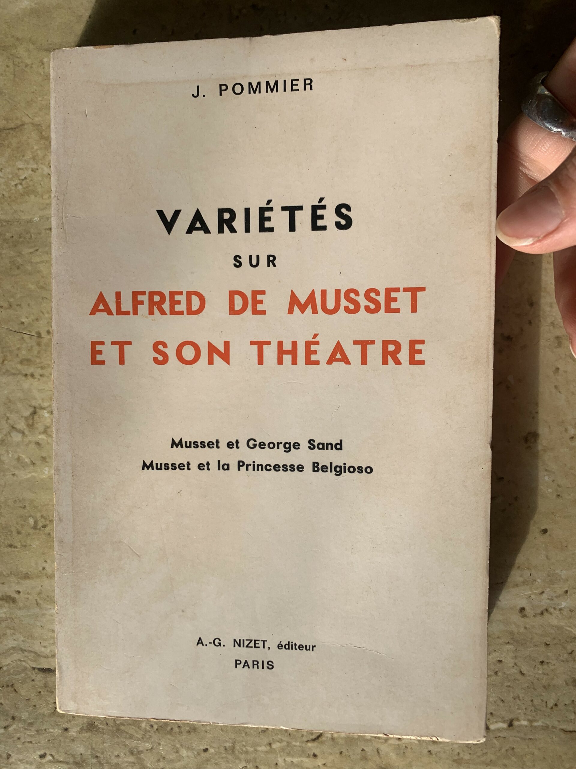 Variétés sur Alfred de Musset et son théâtre / J. Pommier / éditions Nizet Paris