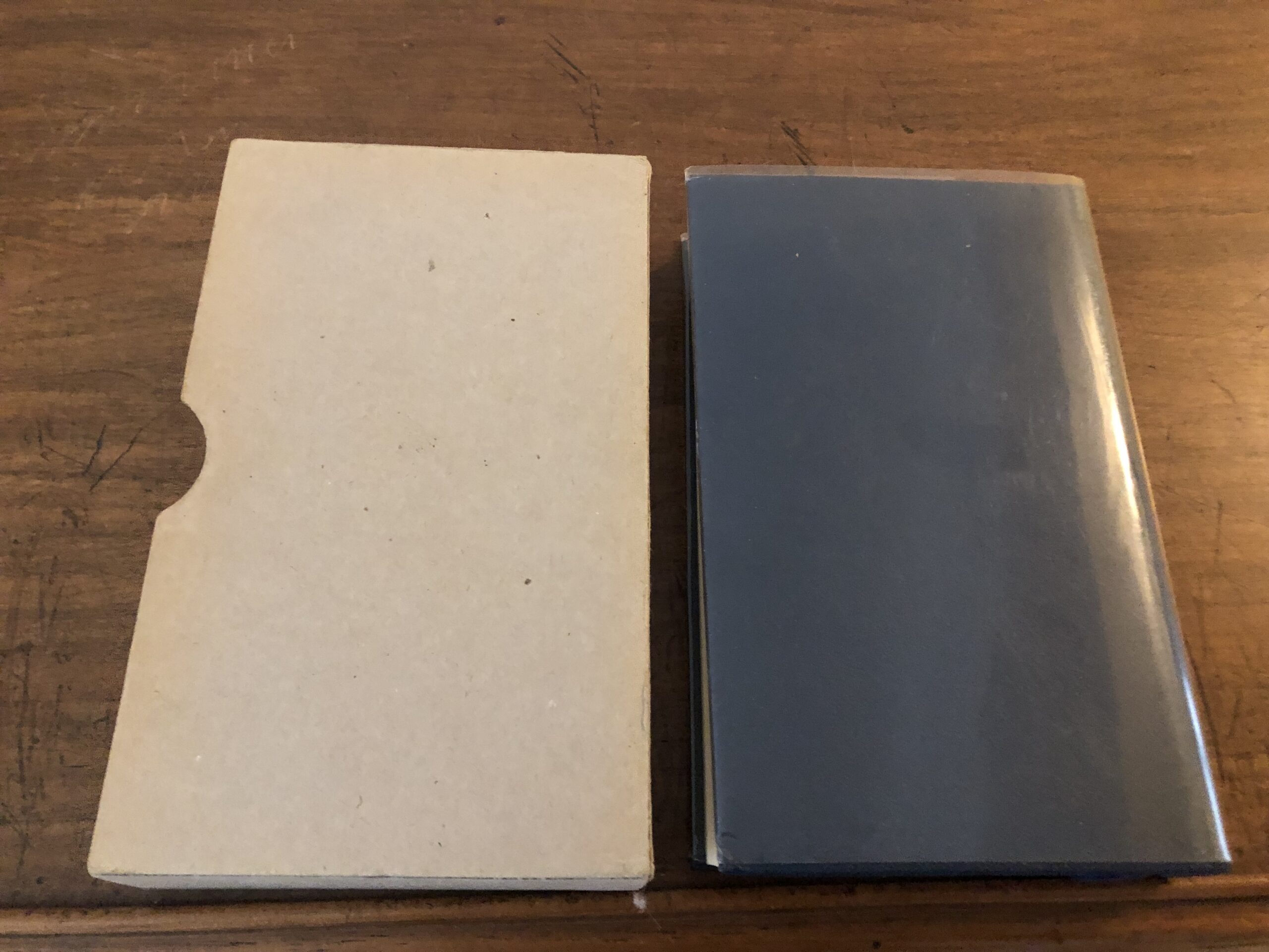 Ouvrage relié, imprimé sur papier bible, 2 signets, Rhodoïd, emboîtage en carton brut gris